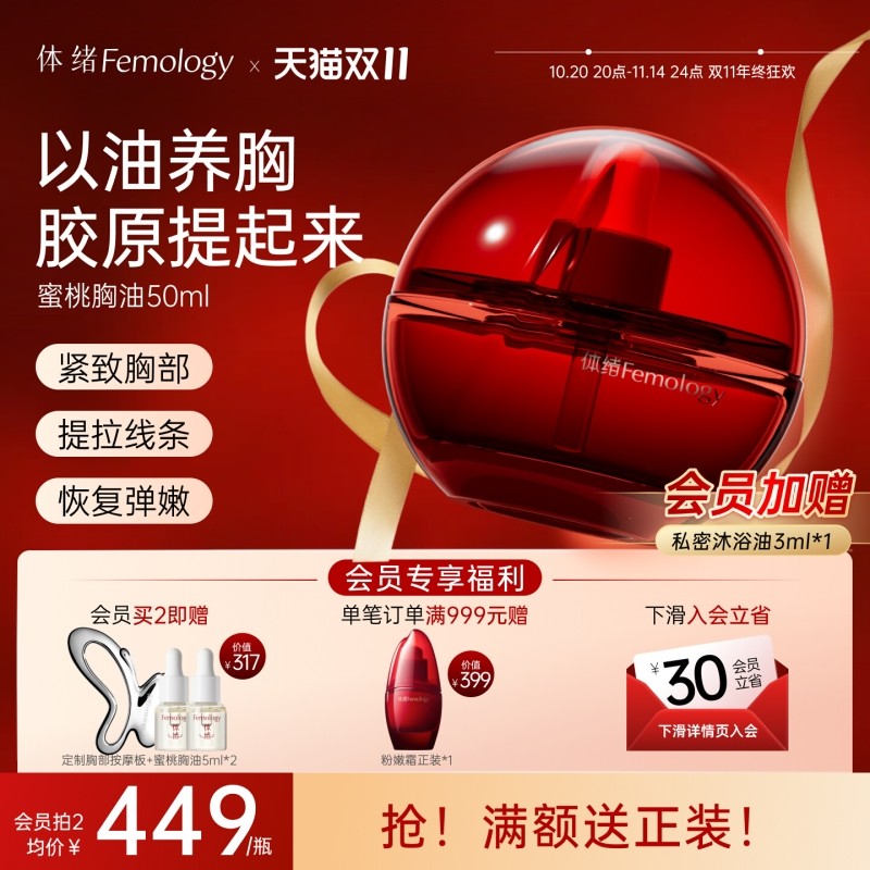 【下垂紧实】体绪蜜桃油提拉紧致盈润嘭弹胸部护理保养按摩精华油