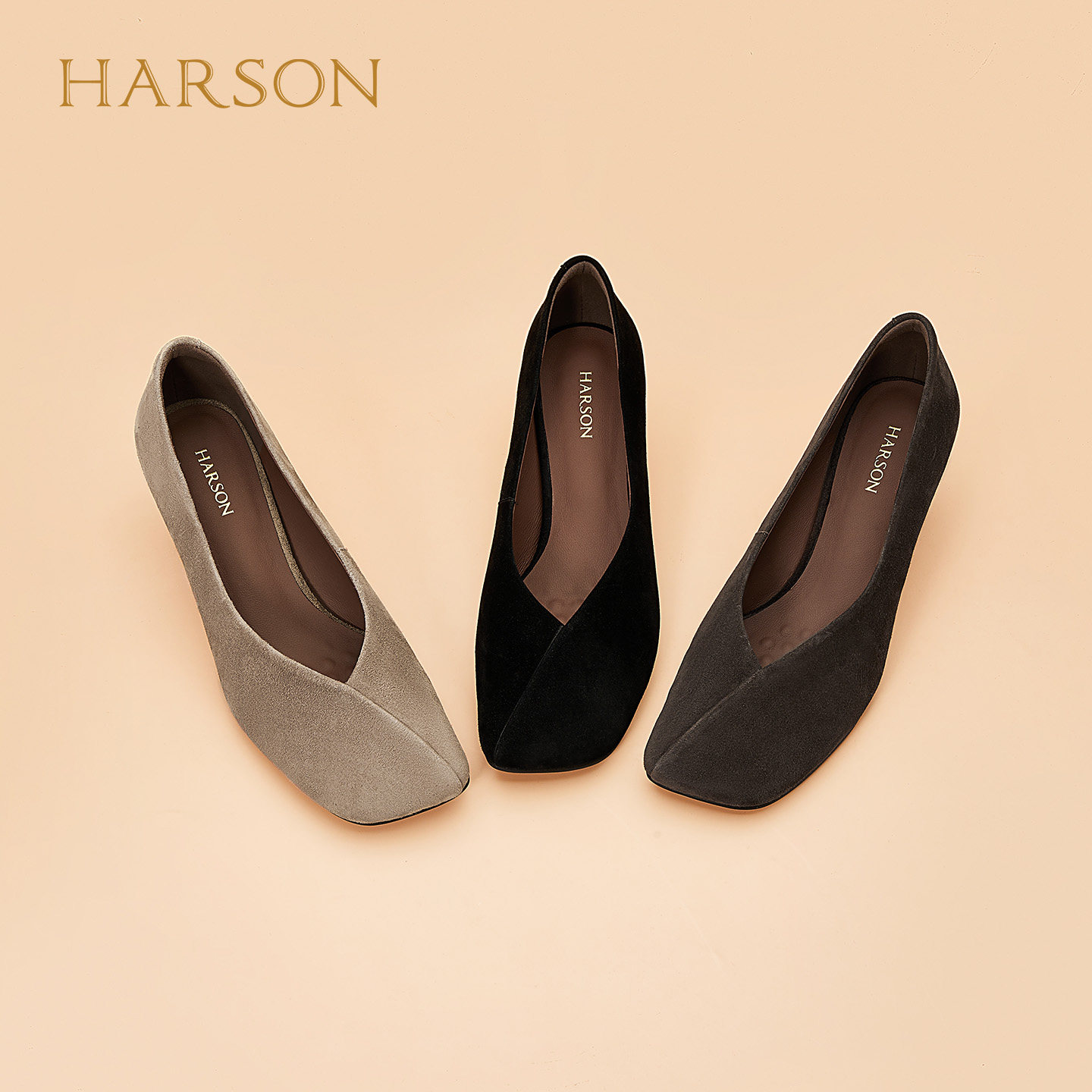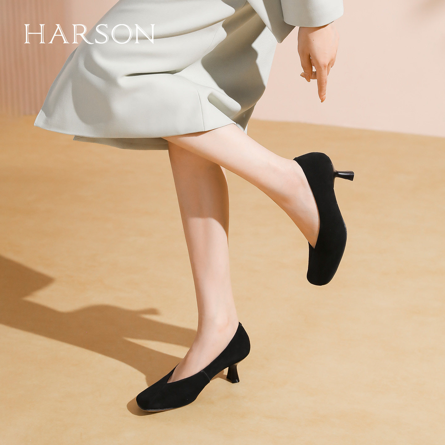 哈森浅口单鞋绒面高跟鞋女方头优雅舒适百搭2025秋新款HWL250159