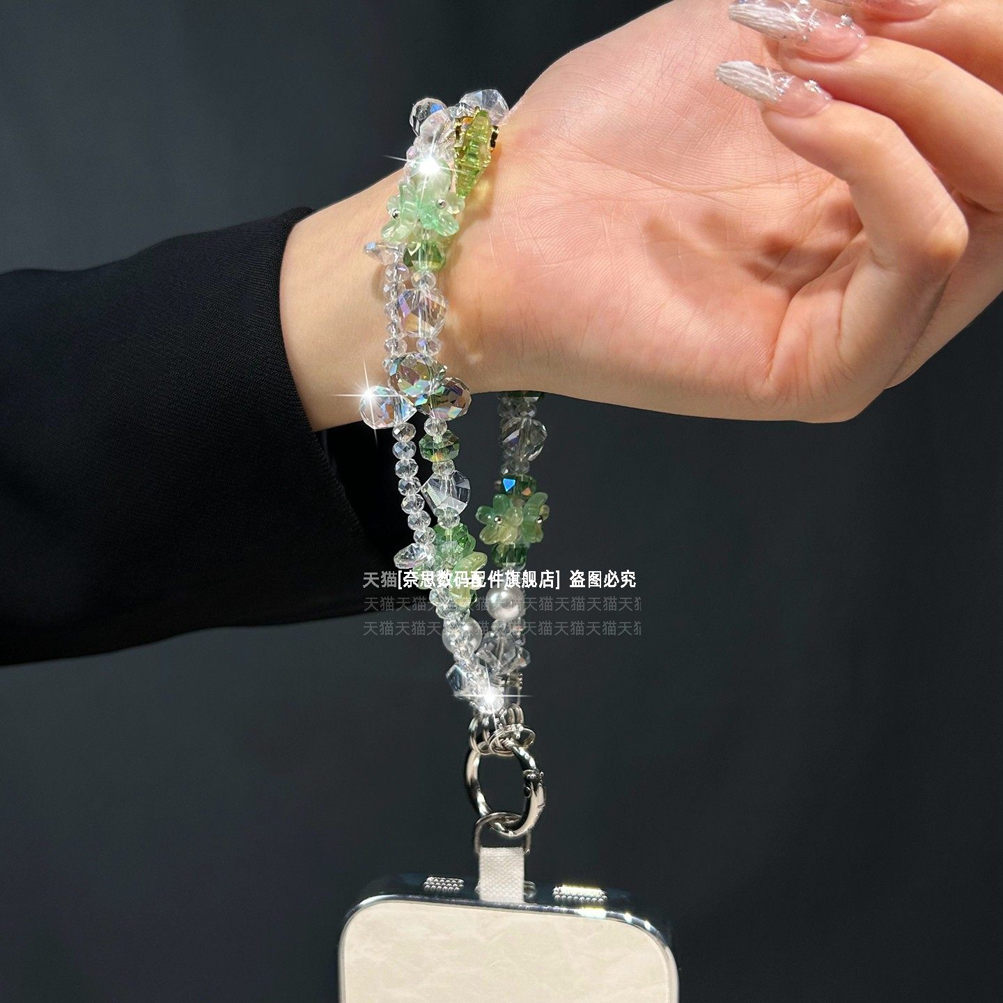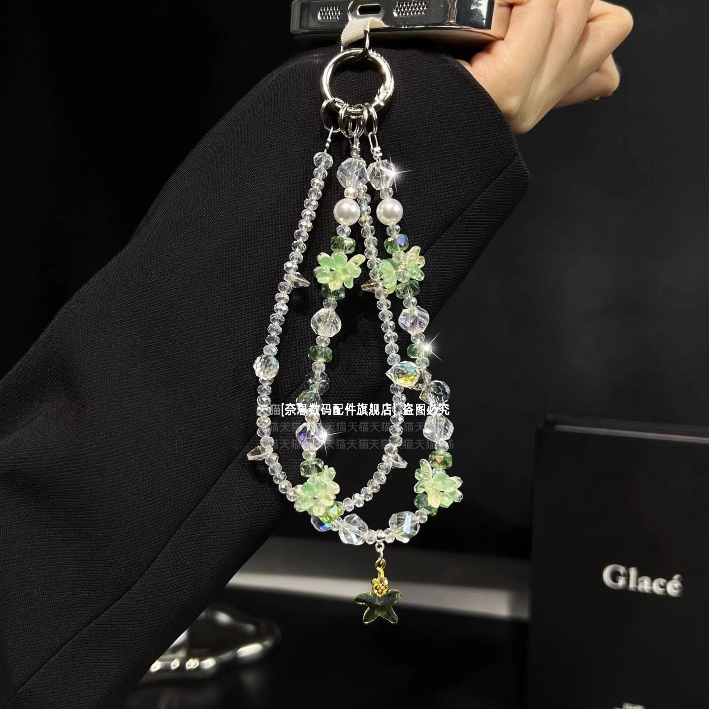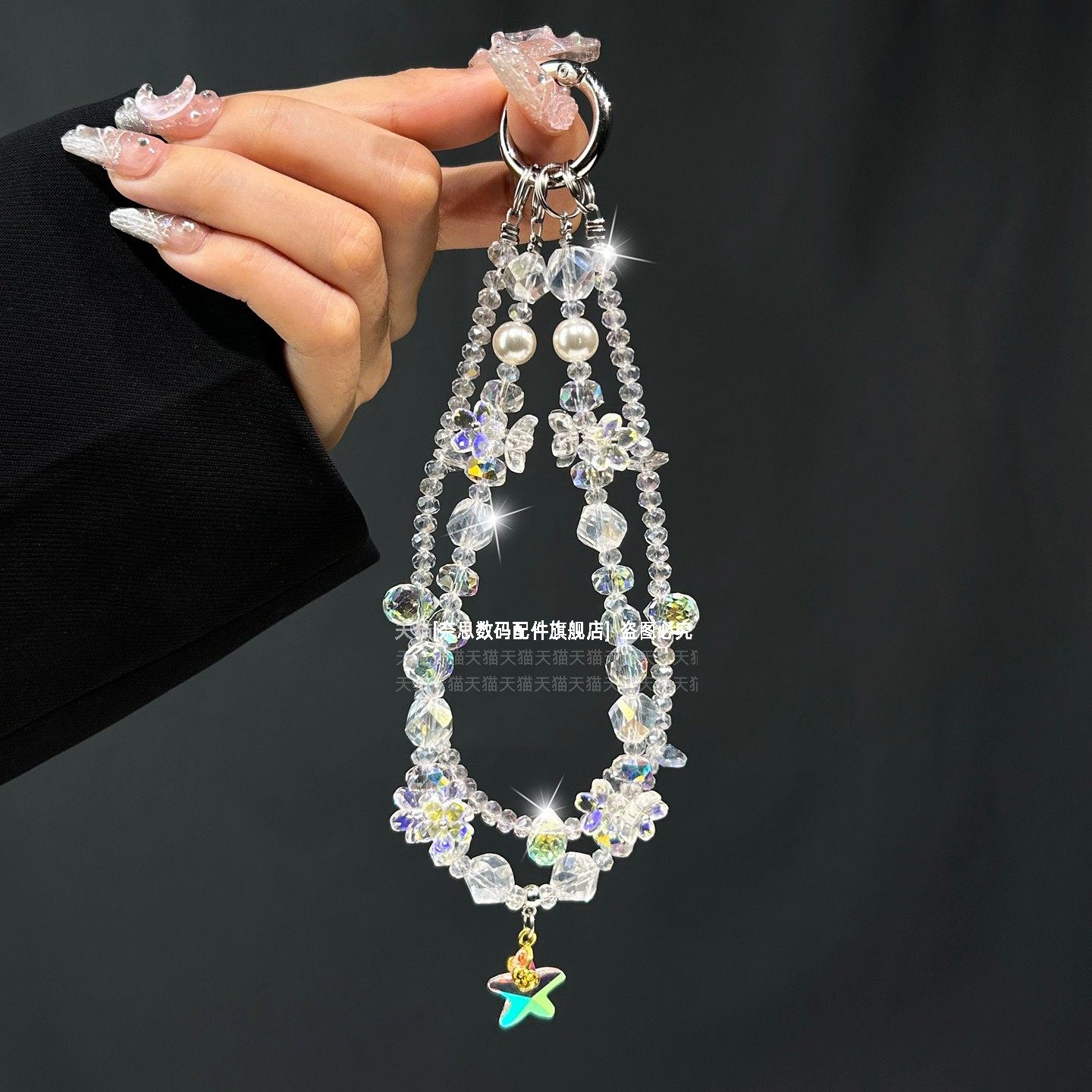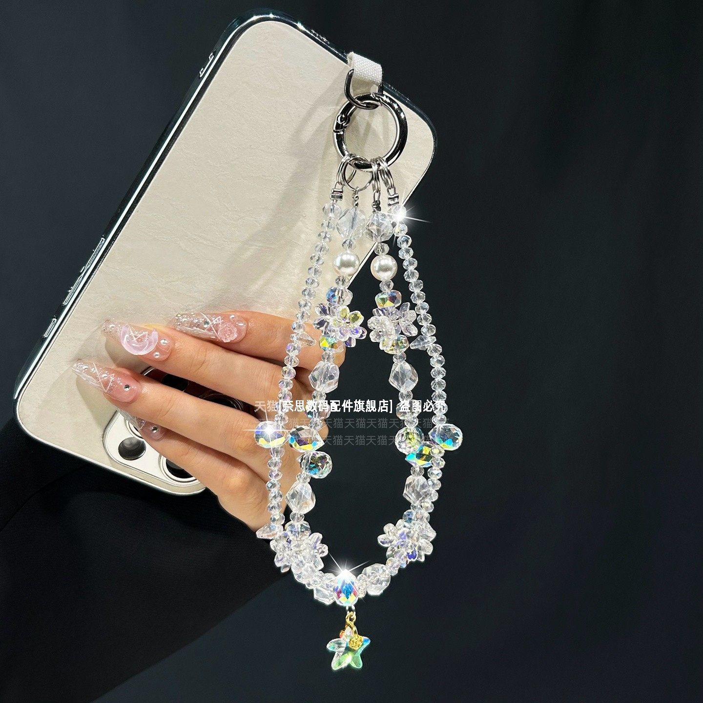 花朵水晶手机链双层串珠精致挂链防丢手腕绳链条结实防摔手链星星吊坠网红女爆闪挂饰夏季爆款包包钥匙腕带壳
