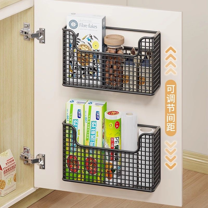橱柜壁挂式置物篮橱柜门内侧保鲜膜置物架冰箱侧垃圾袋挂篮收纳盒