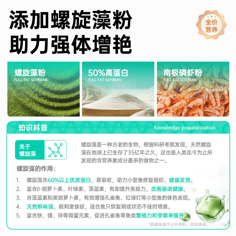 螺旋藻片水晶虾观赏鱼水族鱼粮食品级开口食螺旋藻粉增色汉堡饲料
