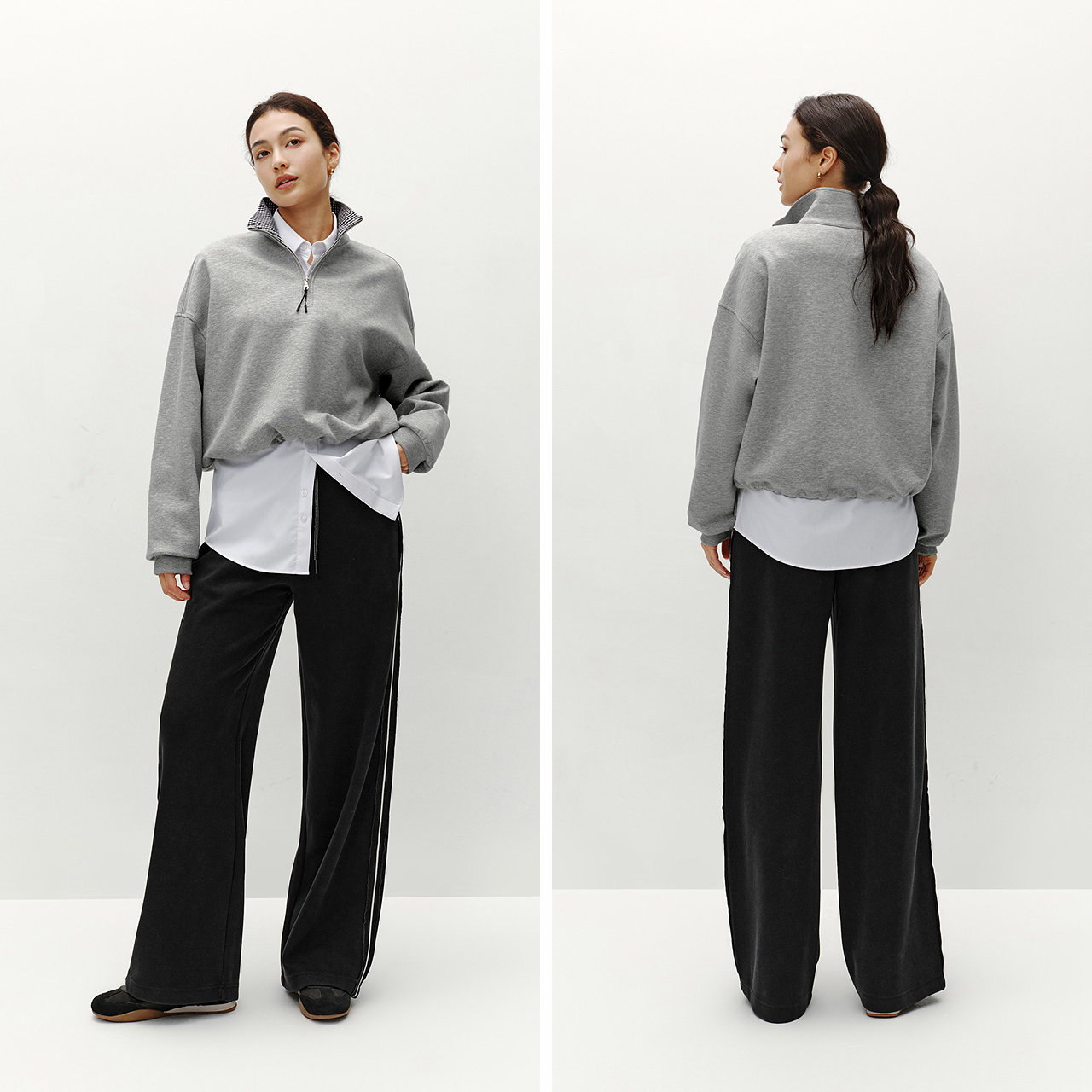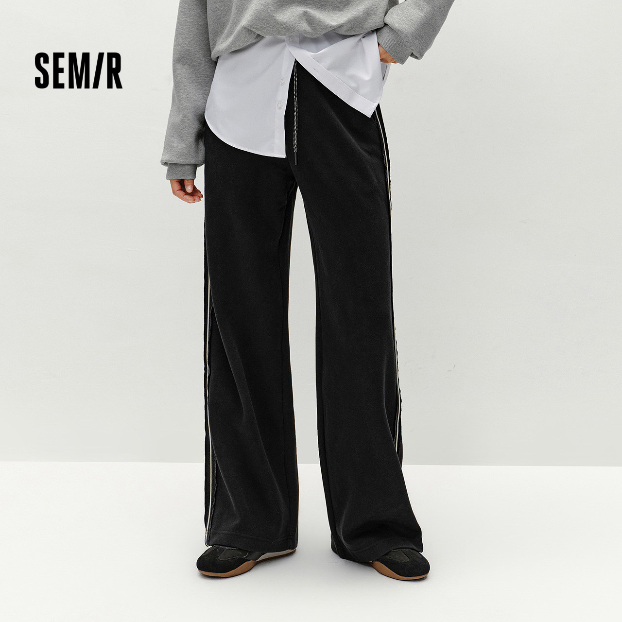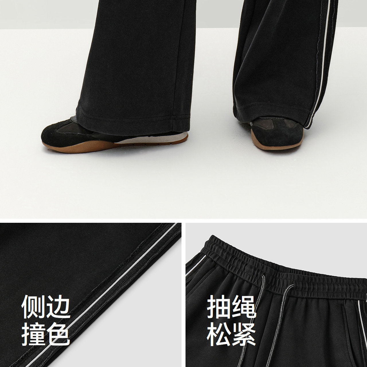 森马休闲裤女冬季撞色拼接宽松阔腿裤ins潮复古运动风显腿长长裤