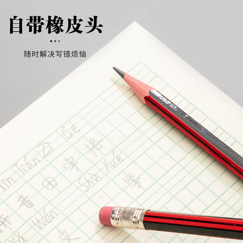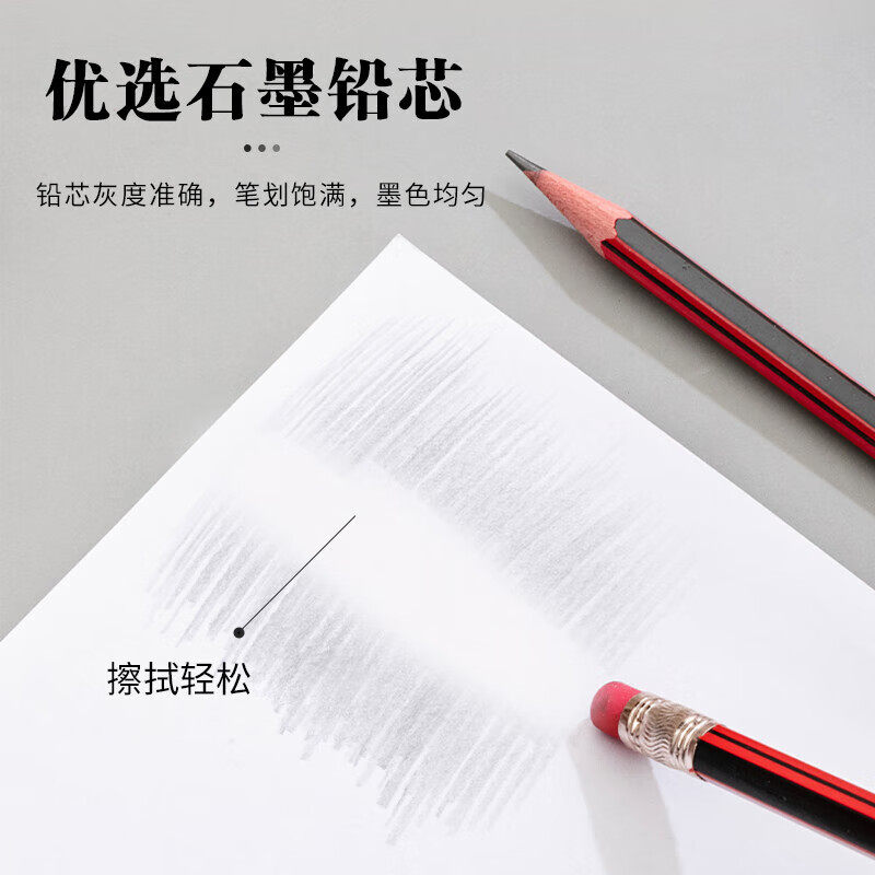 晨光木杆铅笔红杆2B六角带橡皮擦红黑抽条一二年级小学生练字考试专用绘画素描笔简约经典铅笔学习用品