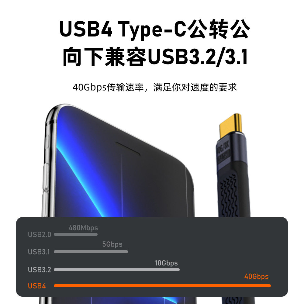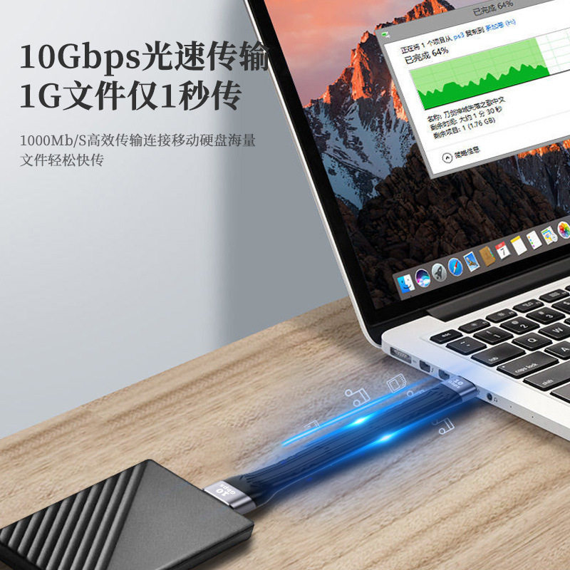尚优琦TYPE-C数据线USB3.2Gen2公对公转母USB延长短线USB4全功能高速固态移动硬盘盒连接电脑4K传输OTG转接线