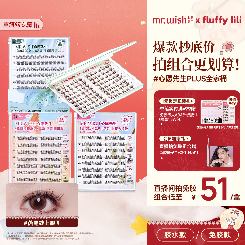 【店播专享】心愿先生懒人三步曲升级PLUS分段假睫毛犬兔系大盒