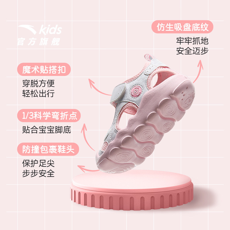 安踏儿童女婴童沙滩鞋2025夏季新款防滑耐磨包头凉鞋潮