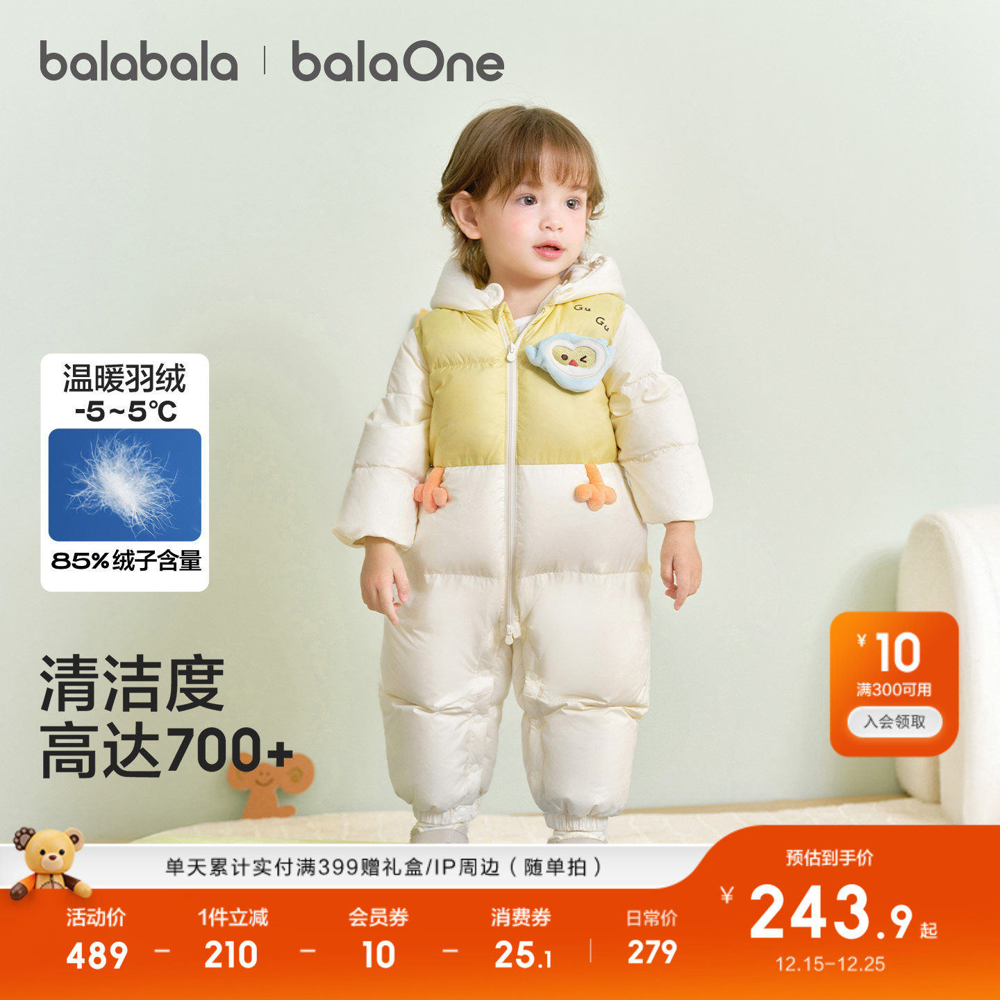 巴拉巴拉童装婴儿羽绒服连体衣2025新款新生儿宝宝冬装哈衣爬服萌