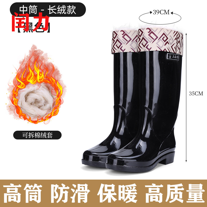 高筒雨鞋牛筋女士防滑水靴胶鞋长筒冬季加绒耐磨水鞋厨房防水雨靴