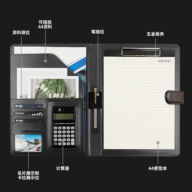 A4文件夹多功能资料夹商务销售谈单本量房本合同夹签约本皮质经理夹公文收纳包垫板企业定制办公用品可印logo