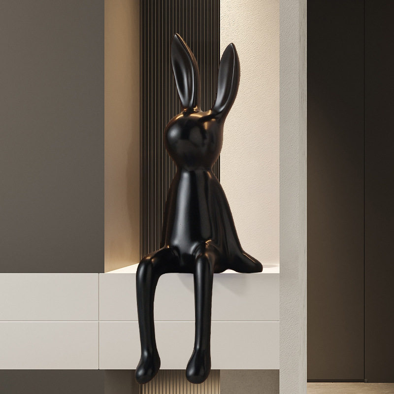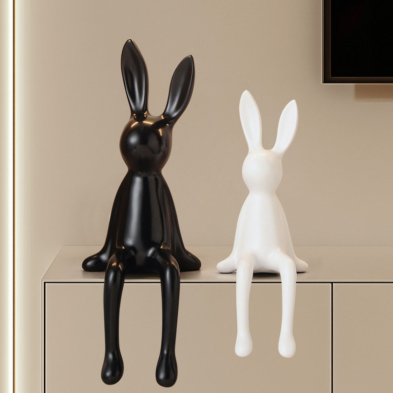 创意长耳兔子坐姿摆件客厅玄关电视柜壁龛样板房家居高级感装饰品
