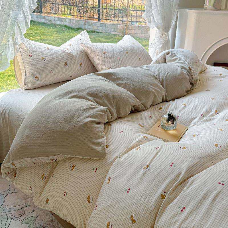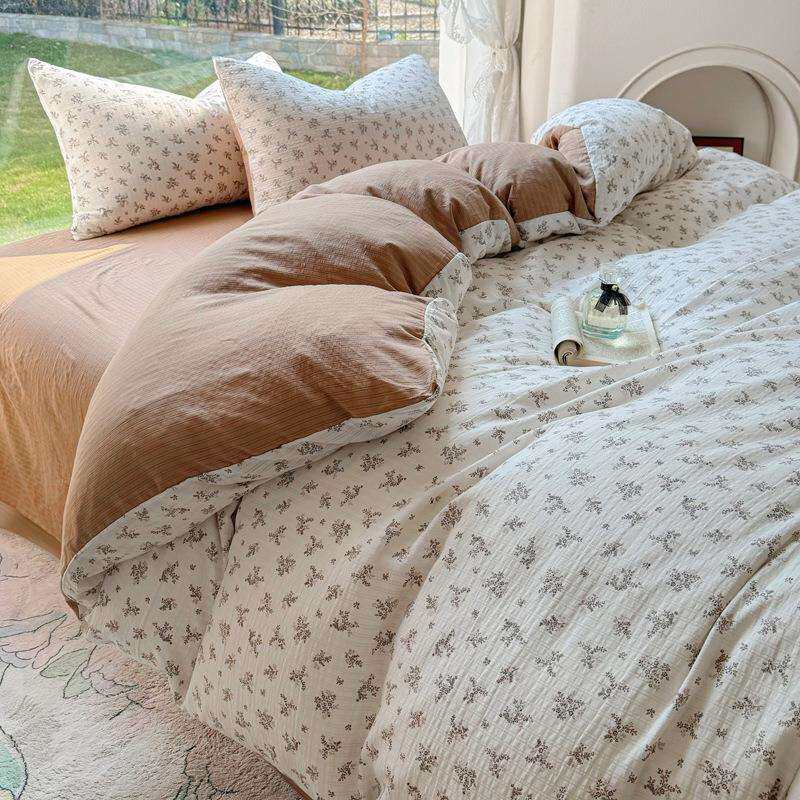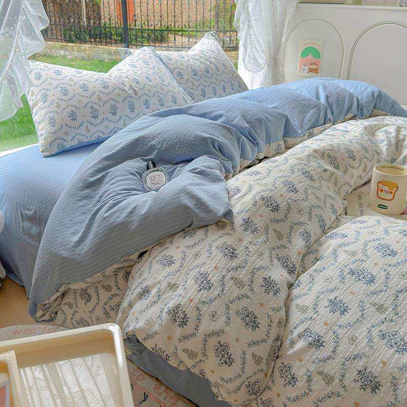 A类母婴级小竺棉四件套亲肤水洗棉被套小清新床单被罩床笠三件套