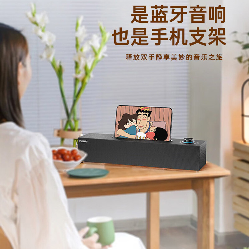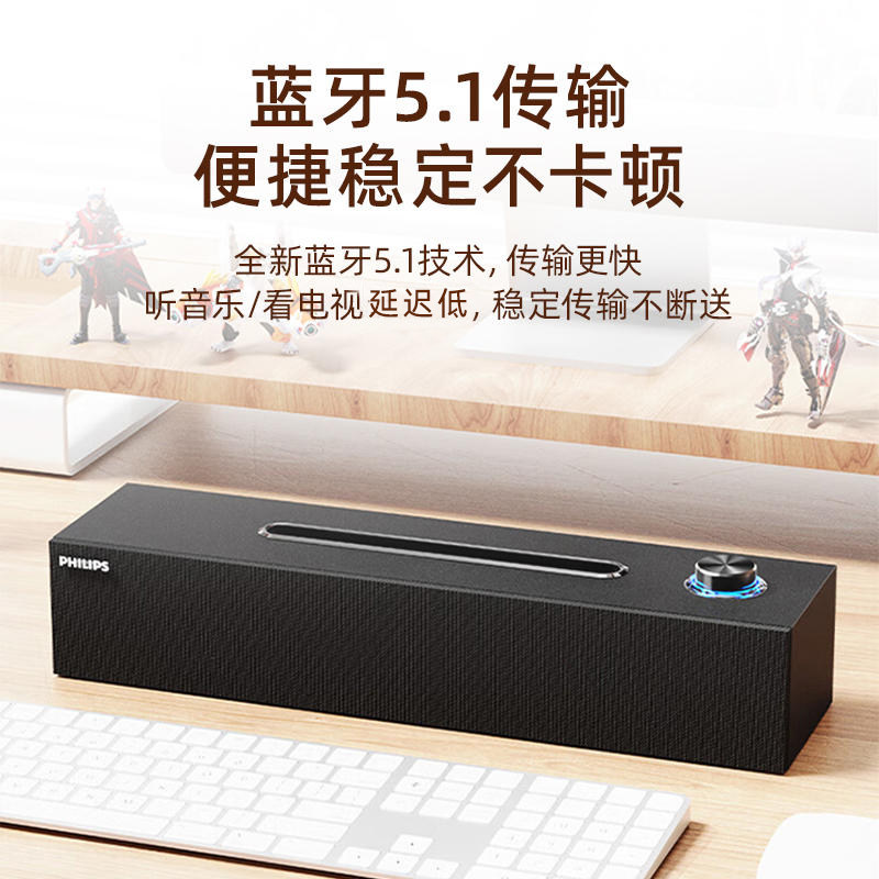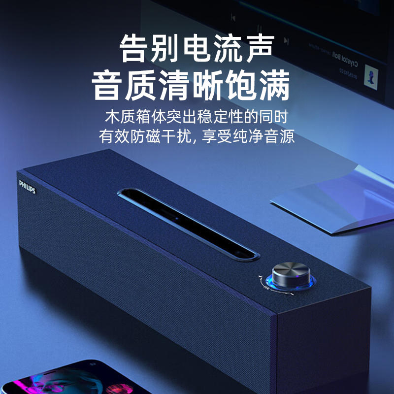 飞利浦SPA3808木质电脑音响usb有线手机蓝牙5.3重低音多媒体音箱