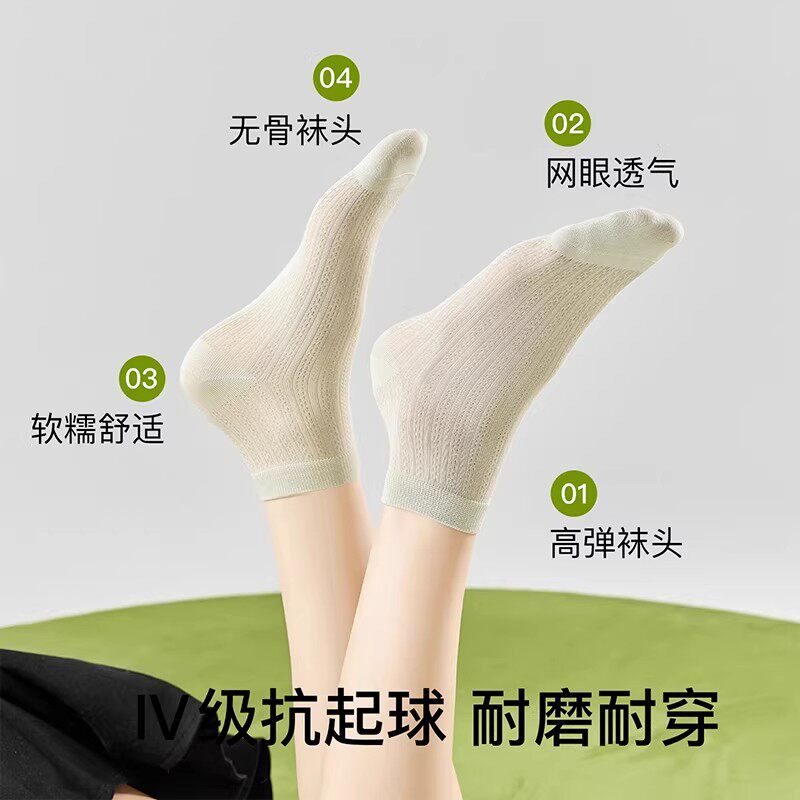白色芭蕾风袜子女夏季薄款短袜无骨桑蚕丝中筒袜抗菌网眼透气夏天