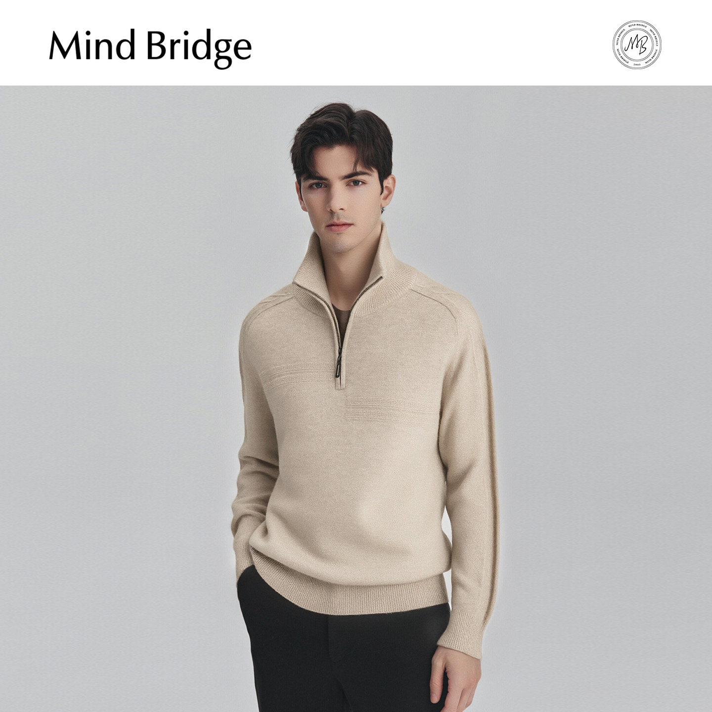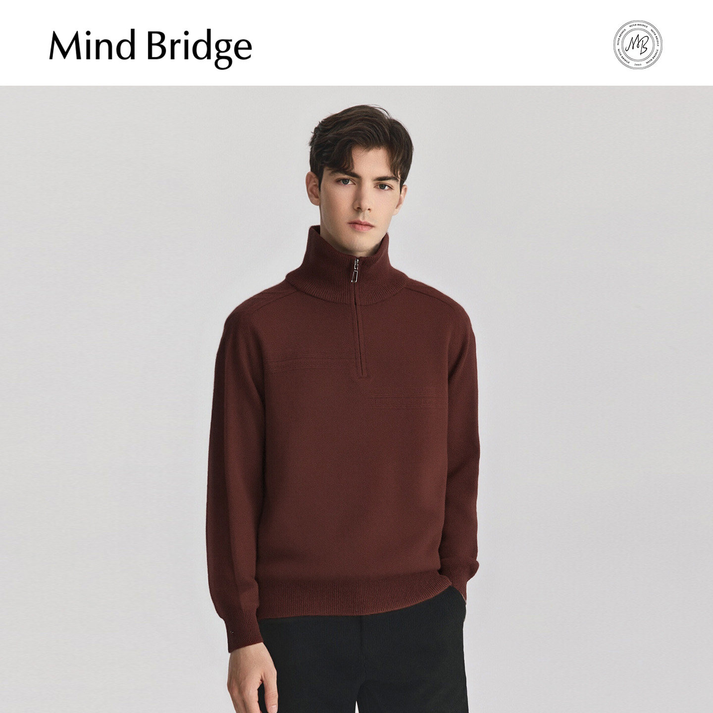 MindBridge【绵羊毛】男士纯色立领毛衣2025年冬厚款半拉链针织衫