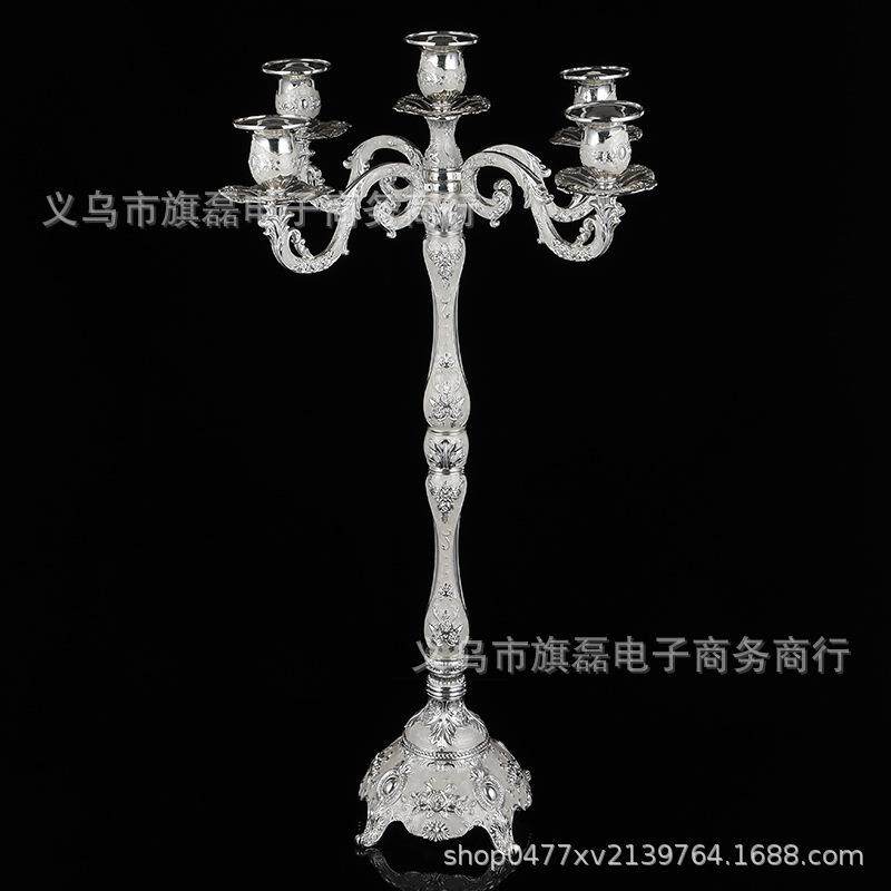 52cm合金三头五头加高金属蜡烛台婚庆结婚酒店KTV餐桌镀银欧式摆