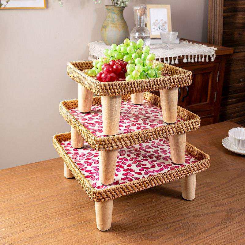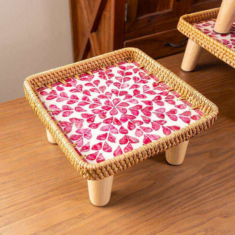 北欧风手工藤编贝壳飘窗茶几方沙发小边几欧式榻榻米小圆桌野餐桌