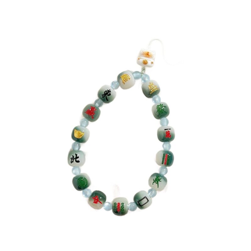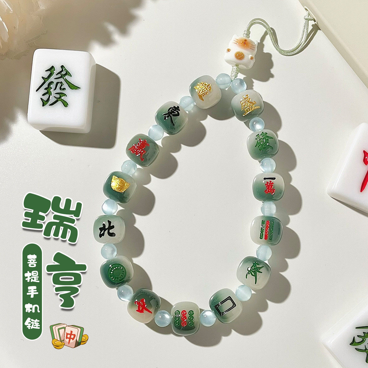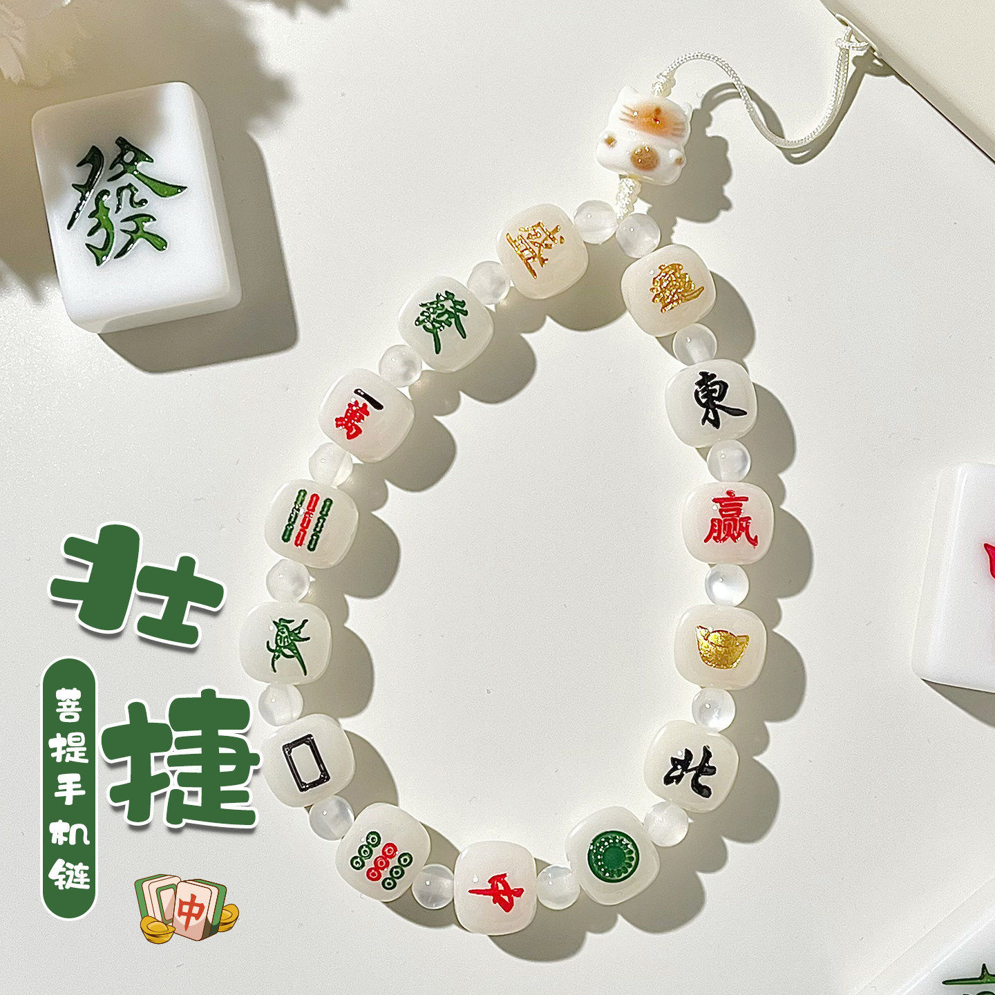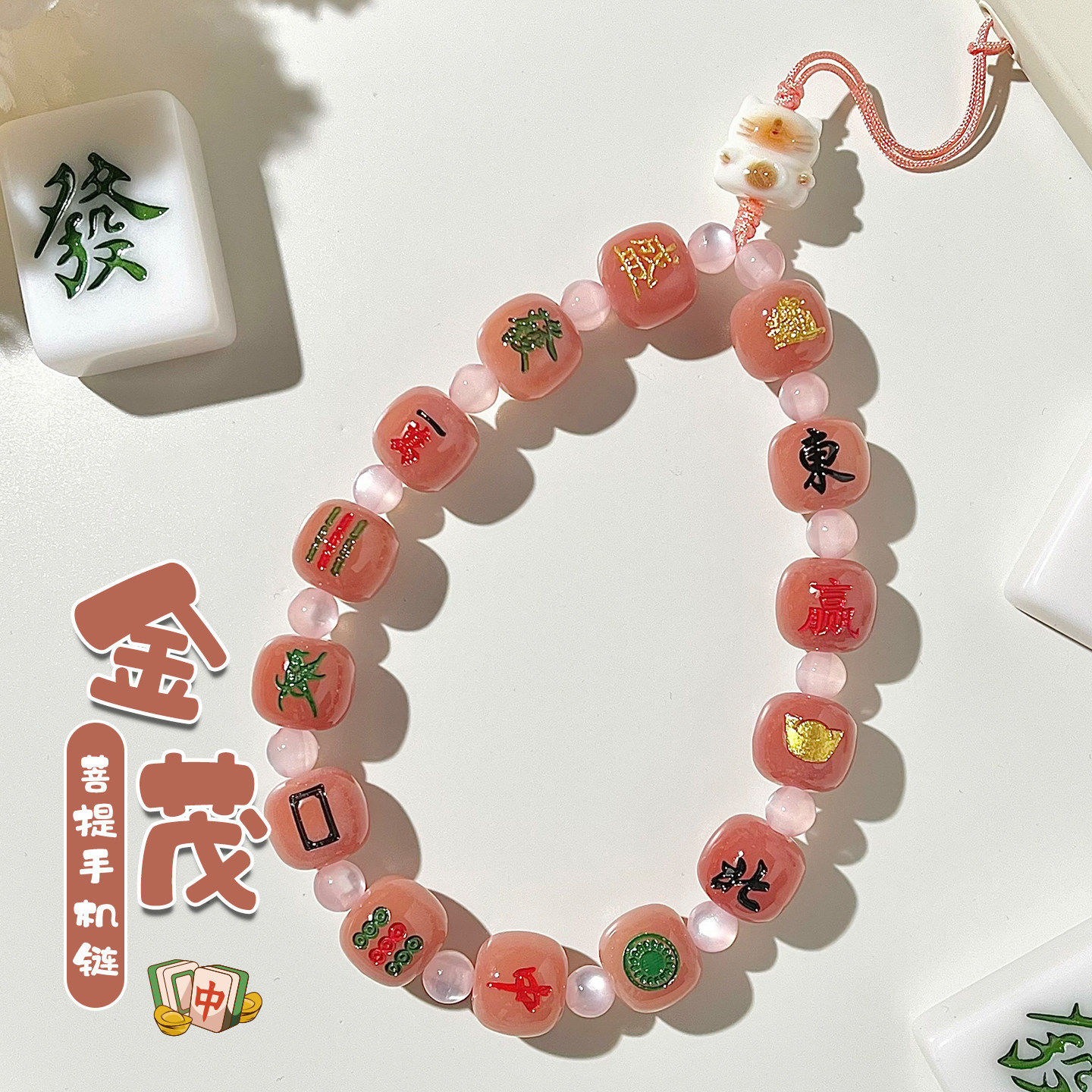 炭烧招财猫菩提根手机挂件女国潮麻将字挂饰男防丢文玩手机链