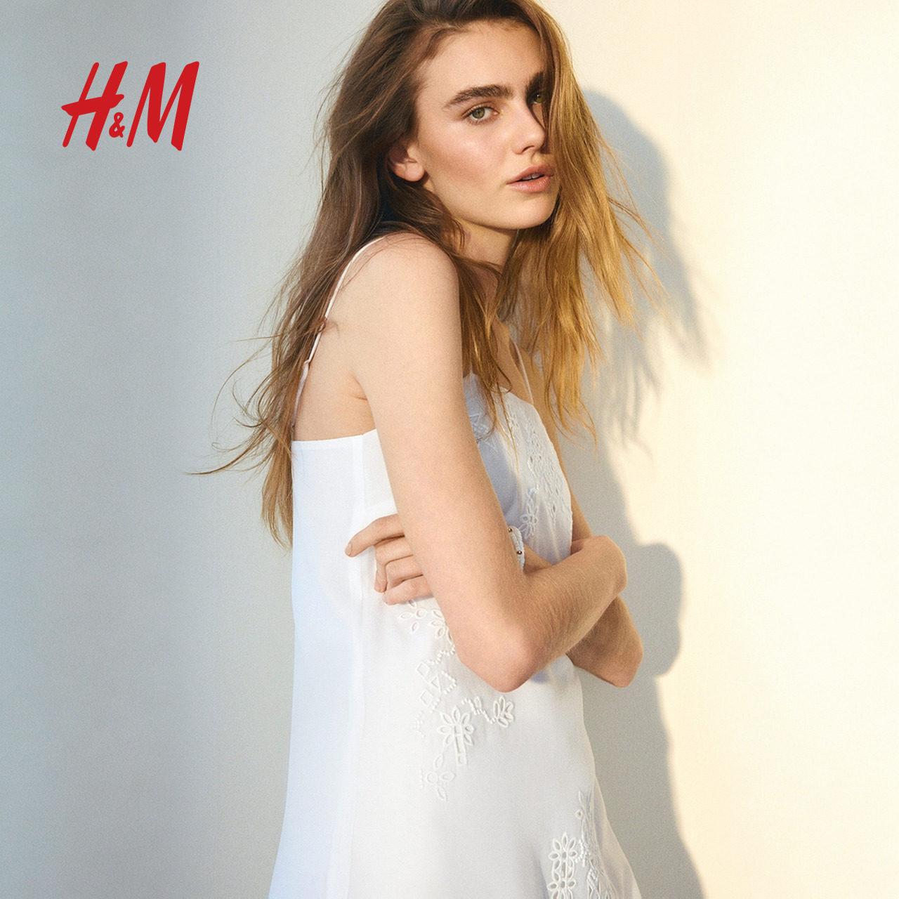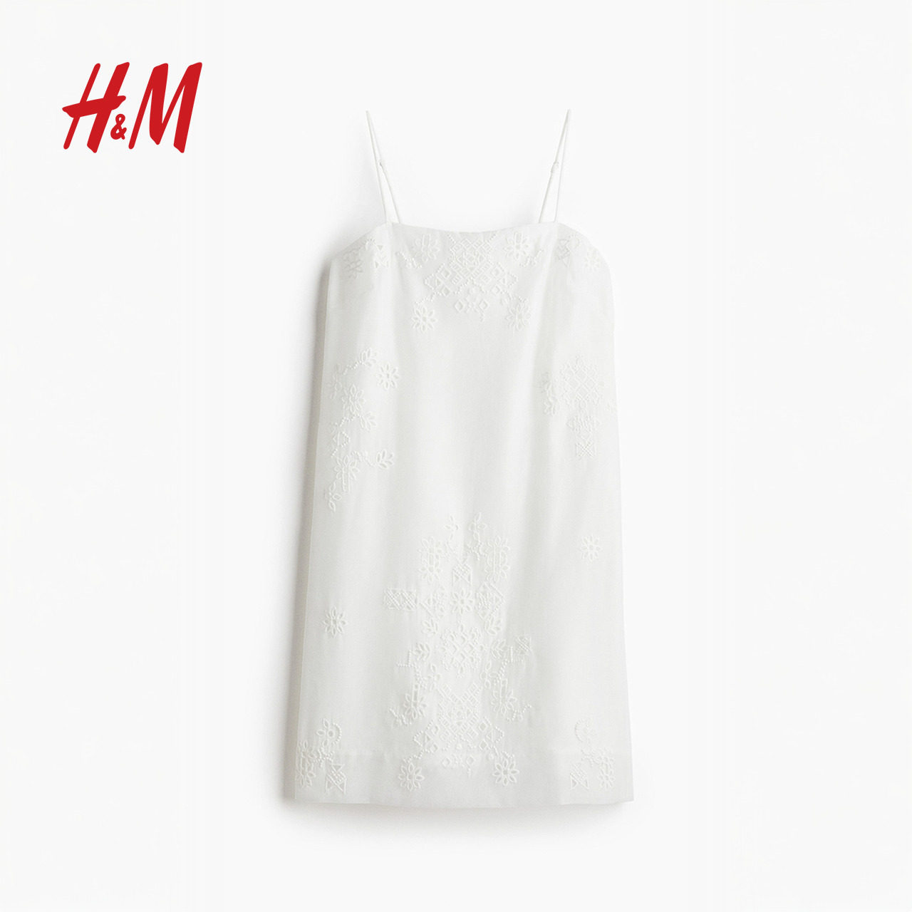 HM女装无领连衣裙春季无袖镂空刺绣吊带连身裙1291247