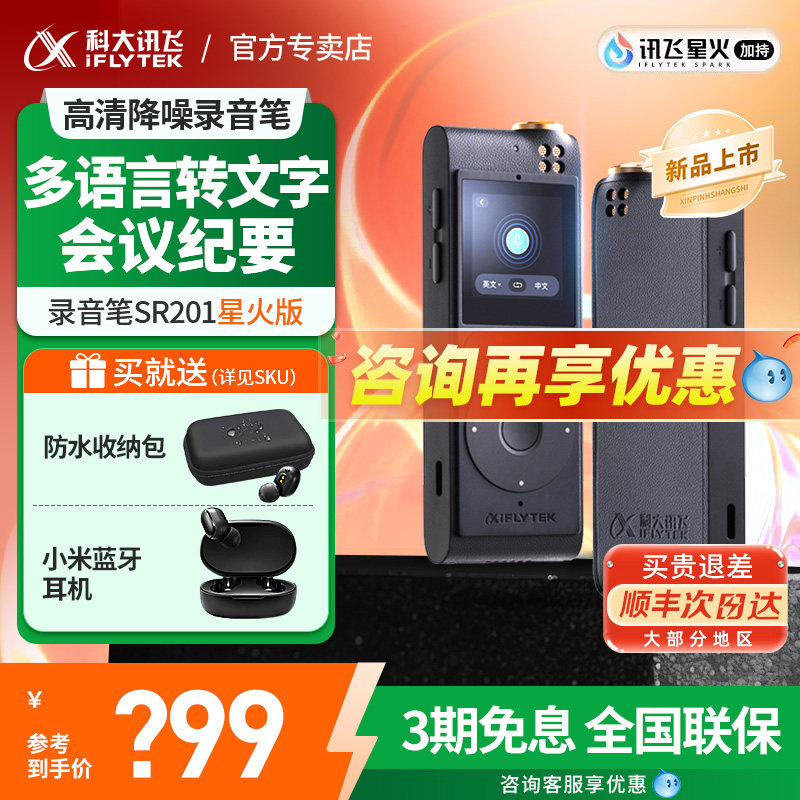 科大讯飞录音笔SR201T星火版语音转文字远程录音高清降噪孔墨华光
