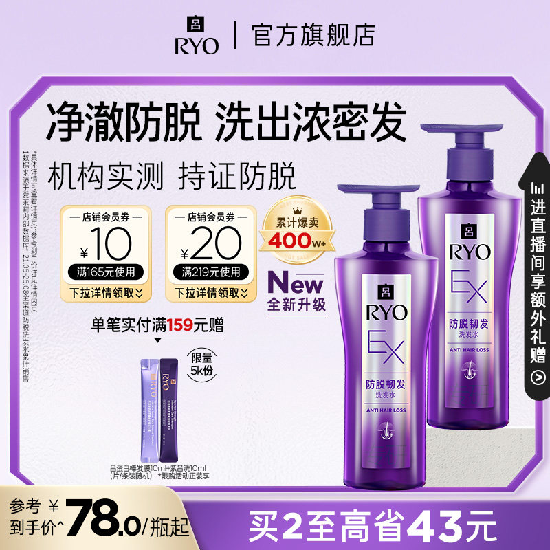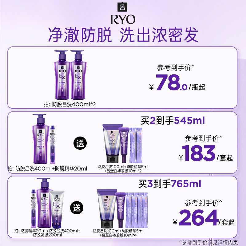 【官方正品】RYO吕防脱洗发水防脱滚珠精华防脱固发发膜