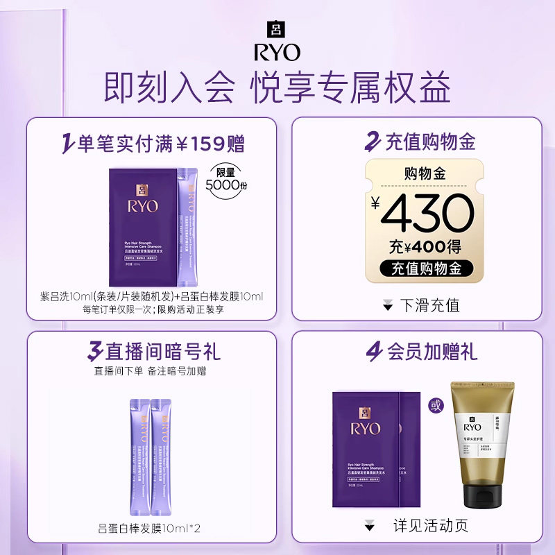 【官方正品】RYO紫吕洗发水强韧洗发露洗头膏护发素