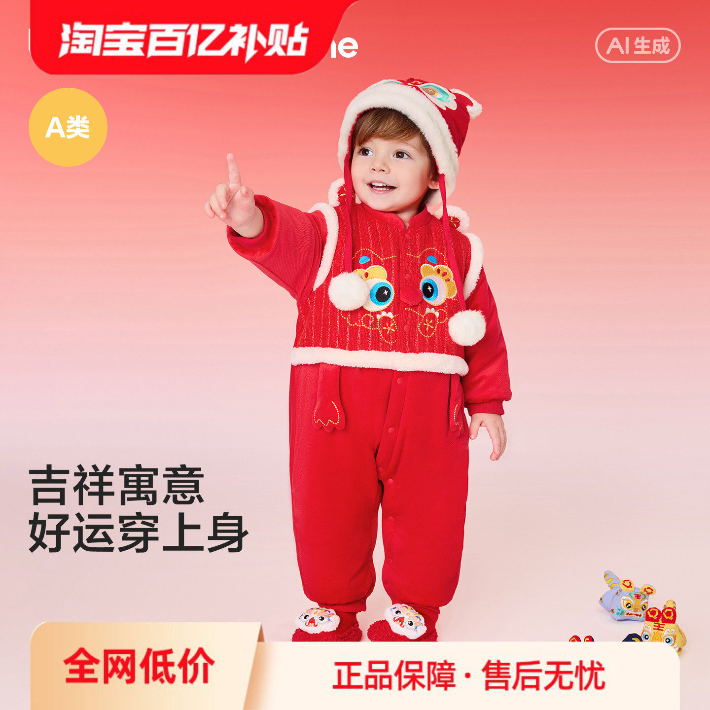 巴拉巴拉童装婴儿连体衣宝宝哈衣爬服2026新款儿童衣服充棉红色