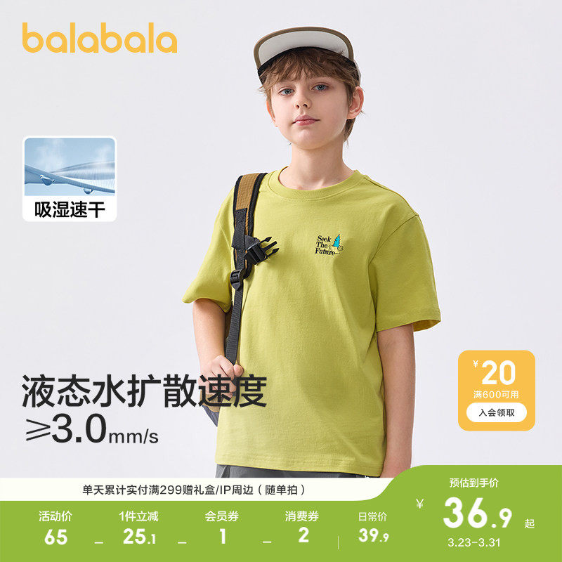 巴拉巴拉童装儿童短袖T恤男童女童上衣大童轻薄新款夏装速干时尚