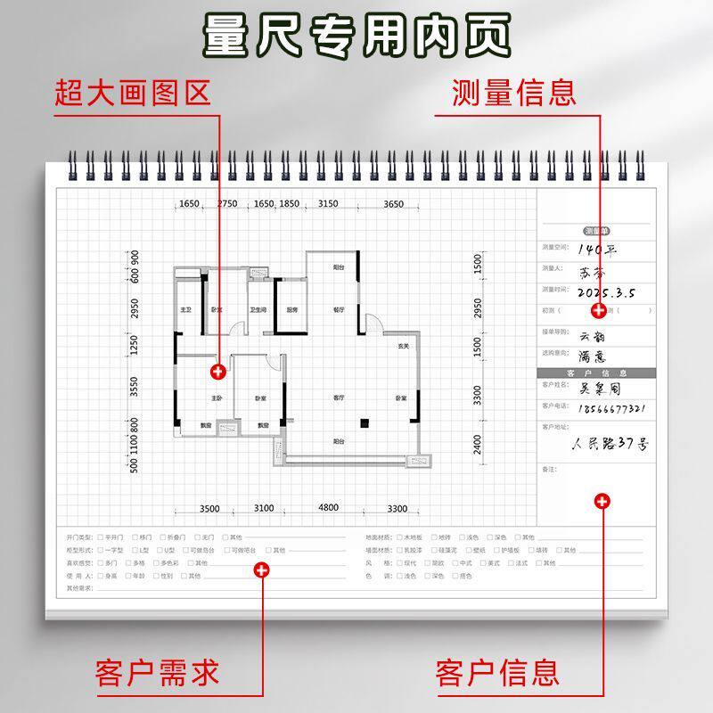 定制室内测量房A4设计师尺寸专用全屋装修绘图做记录线圈笔记本子