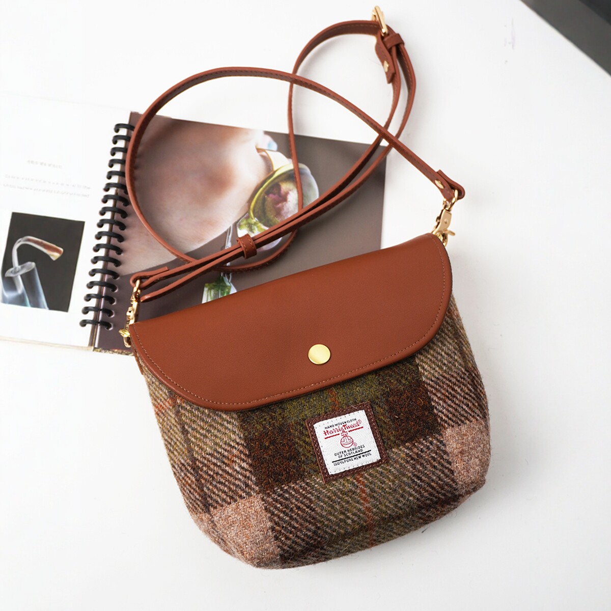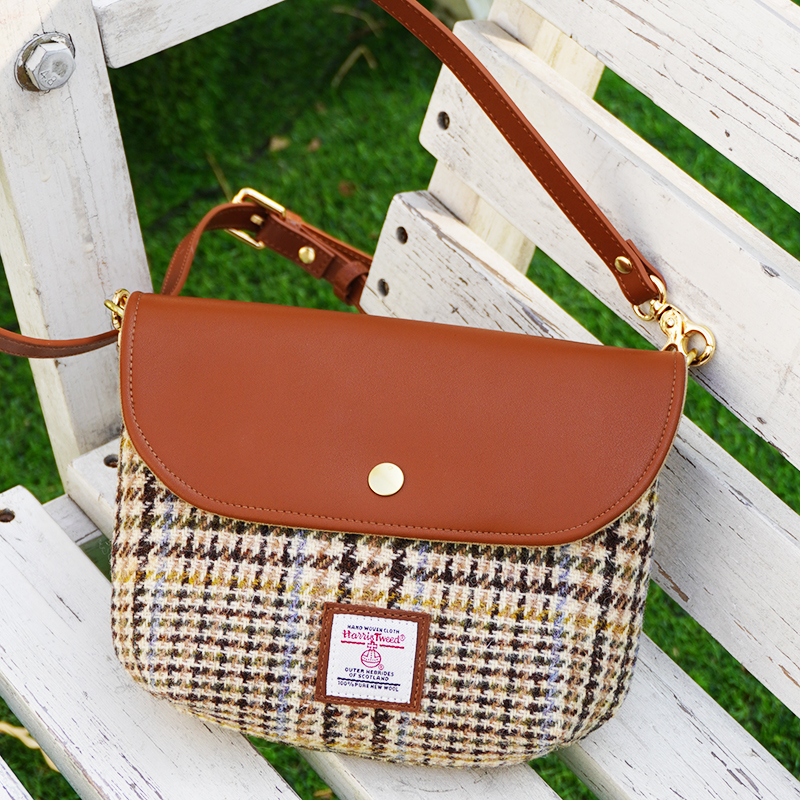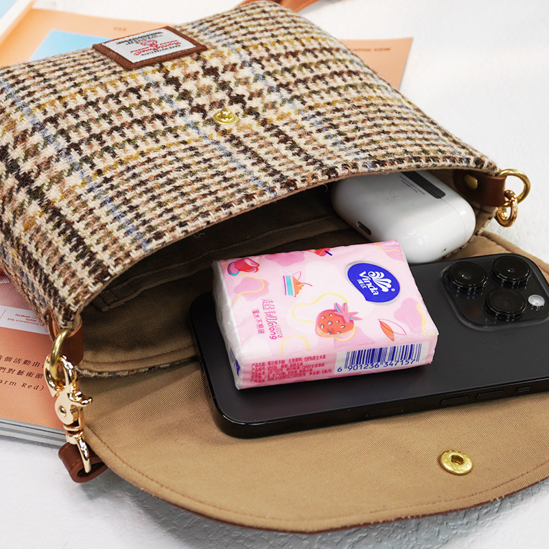 harris tweed粗花呢斜挎包单肩小包可爱手机口红包小众通勤豆腐包