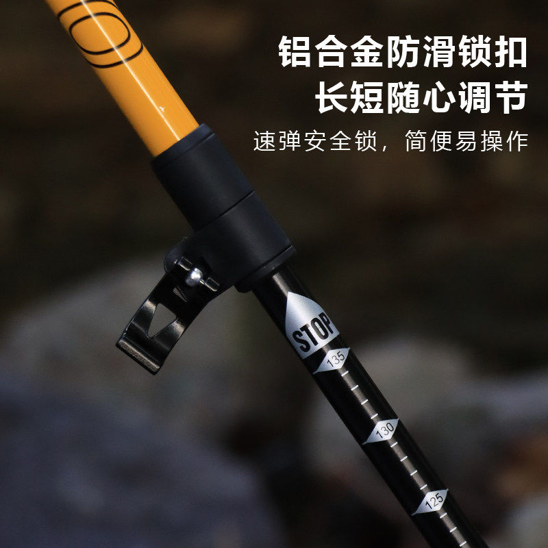 户外登山杖手杖 徒步折叠伸缩外锁拐杖 铝合金行走健走杖爬山装备