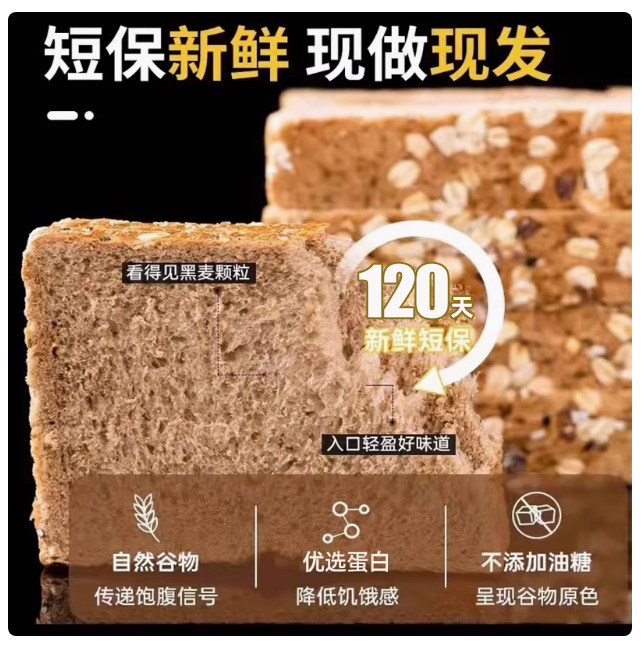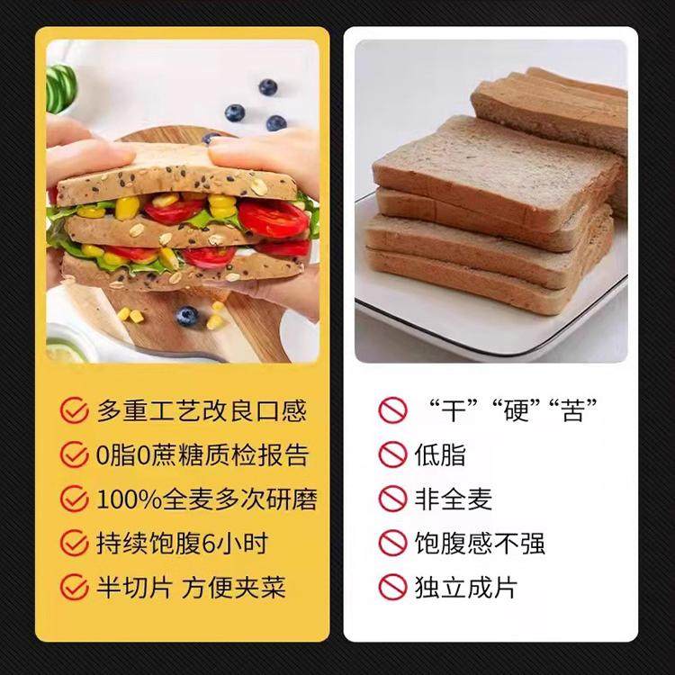 全麦面包0脂肪0添加蔗糖粗粮黑麦吐司整箱早餐代餐饱腹主食吐司