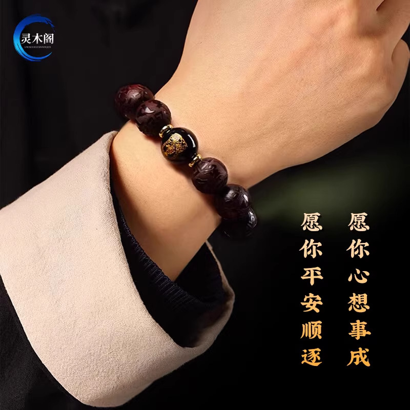 印度小叶紫檀手串男士款手链佛珠檀木质文玩盘手玩送男友父亲礼物