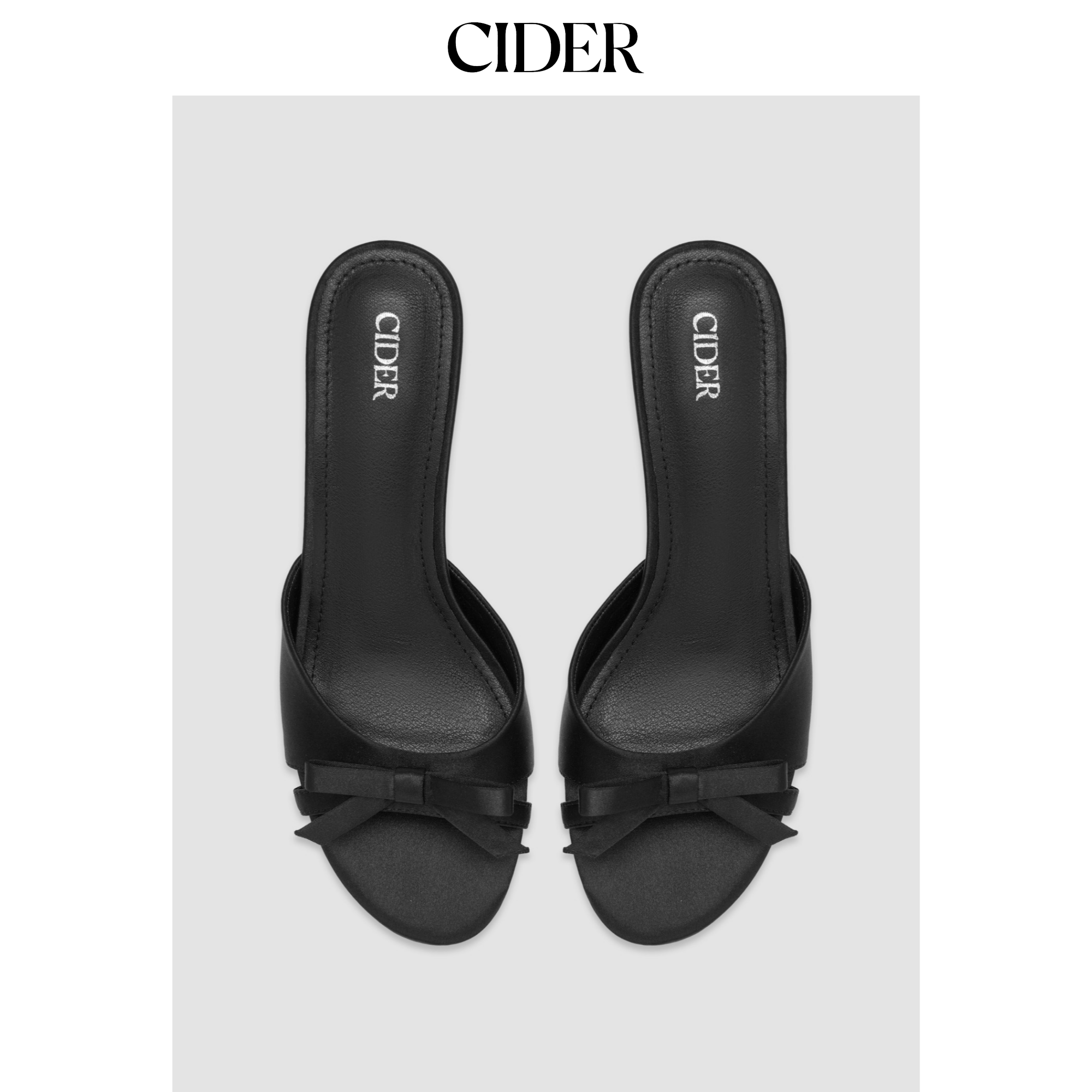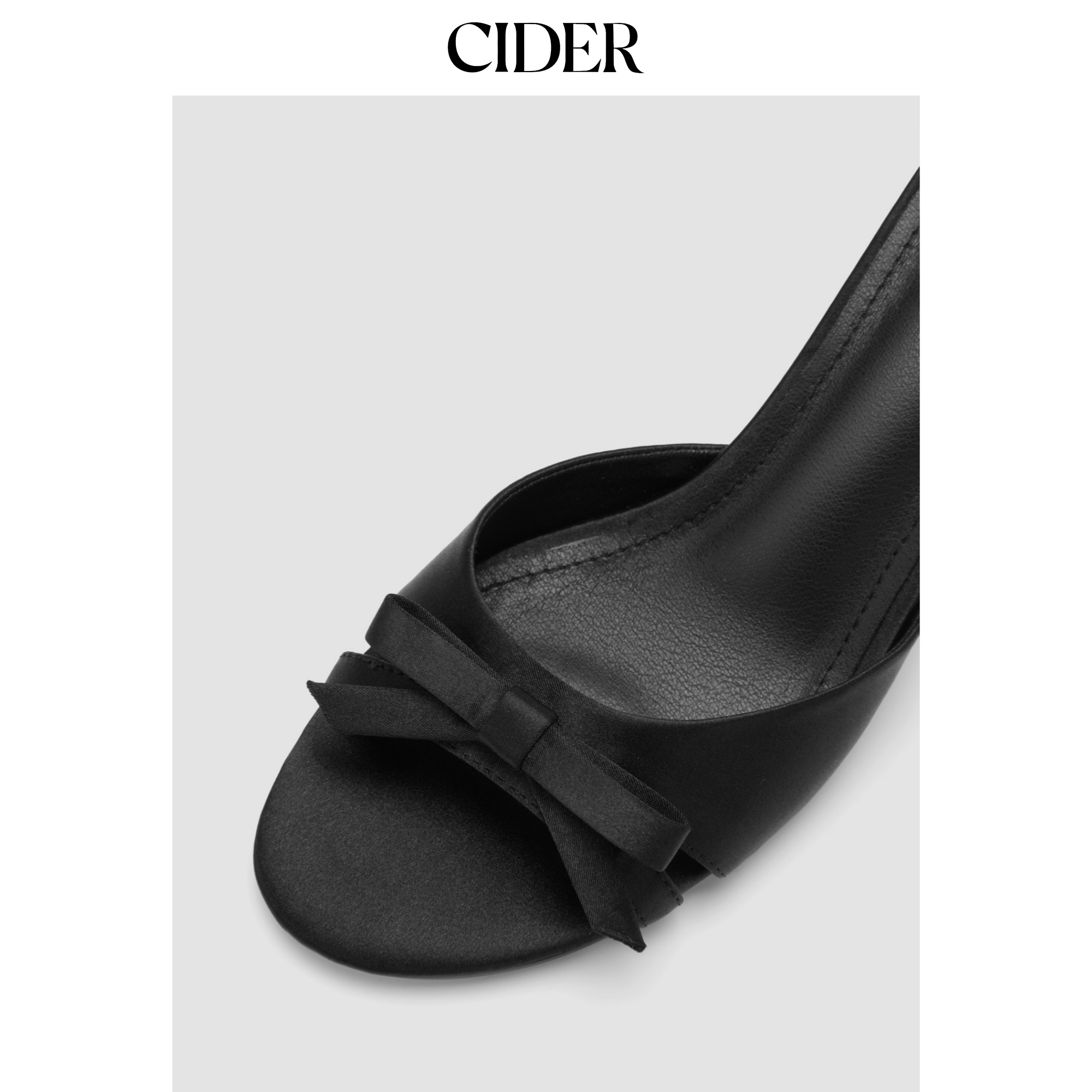 CIDER 双色蝴蝶结缎面一字带中跟细高跟凉鞋114583000