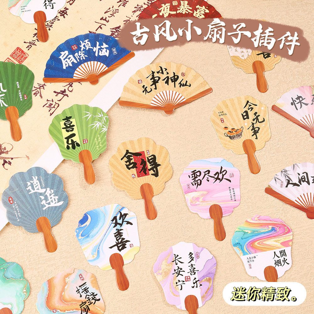 创意迷你小扇子插件异形书法文字插卡装饰贺卡蛋糕冰淇淋甜品插牌