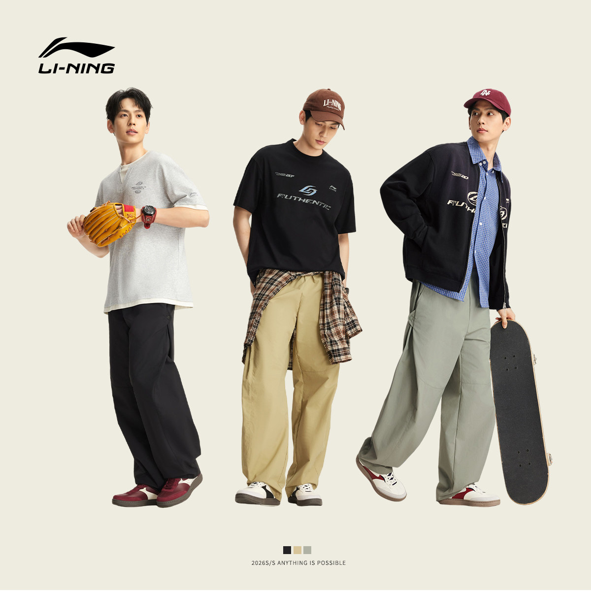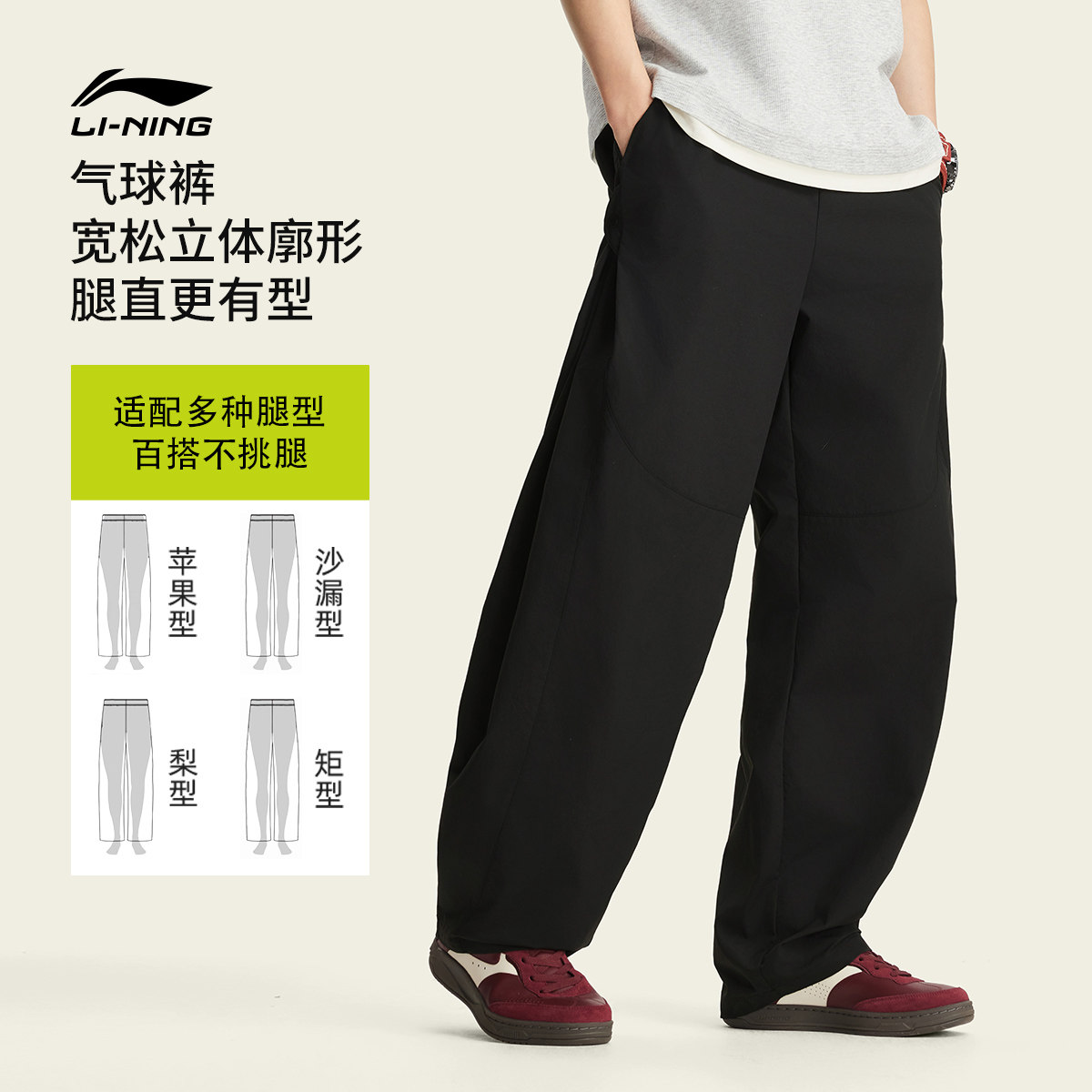李宁C位裤丨气球裤男新款宽松裤子夏季休闲卡其色裤子直筒运动裤