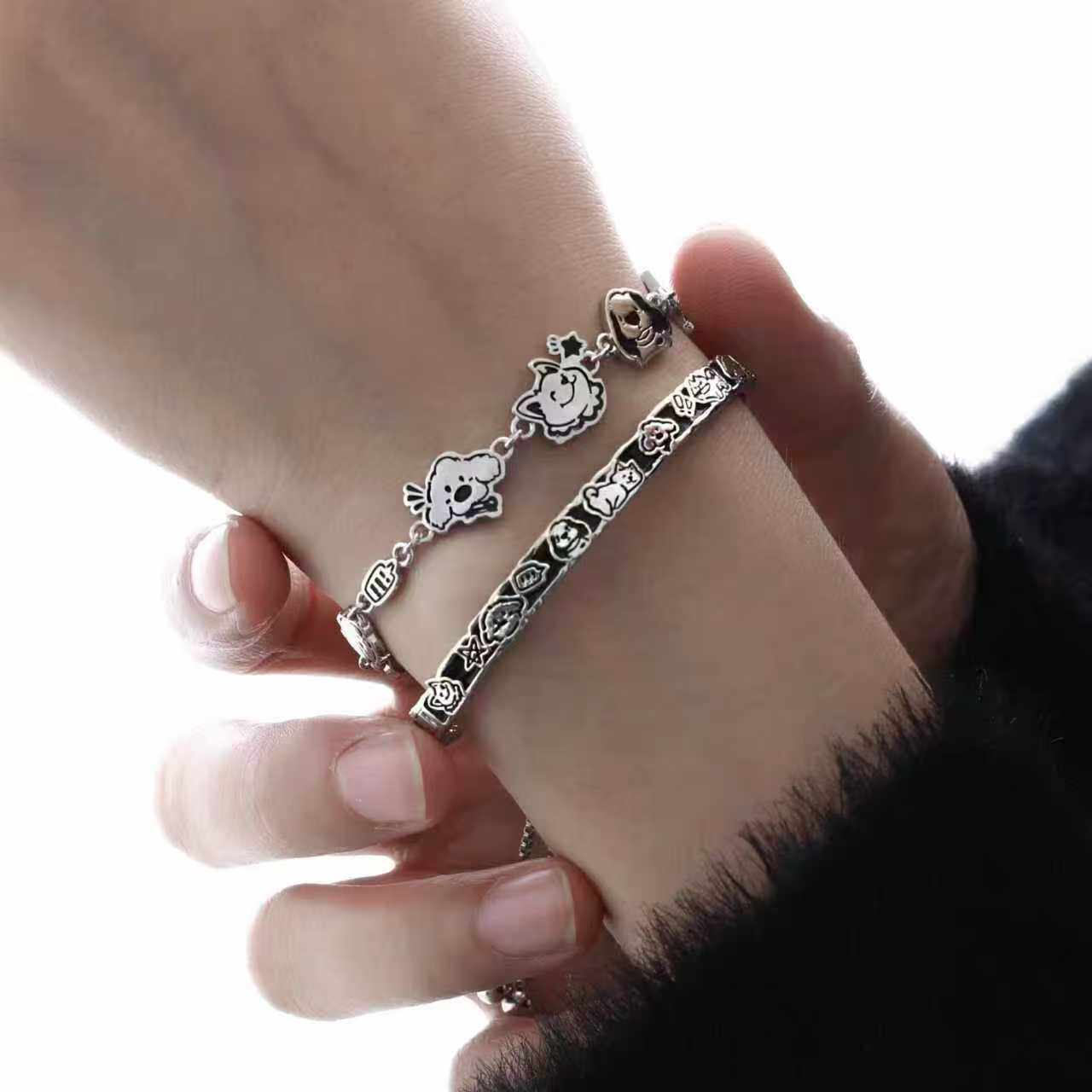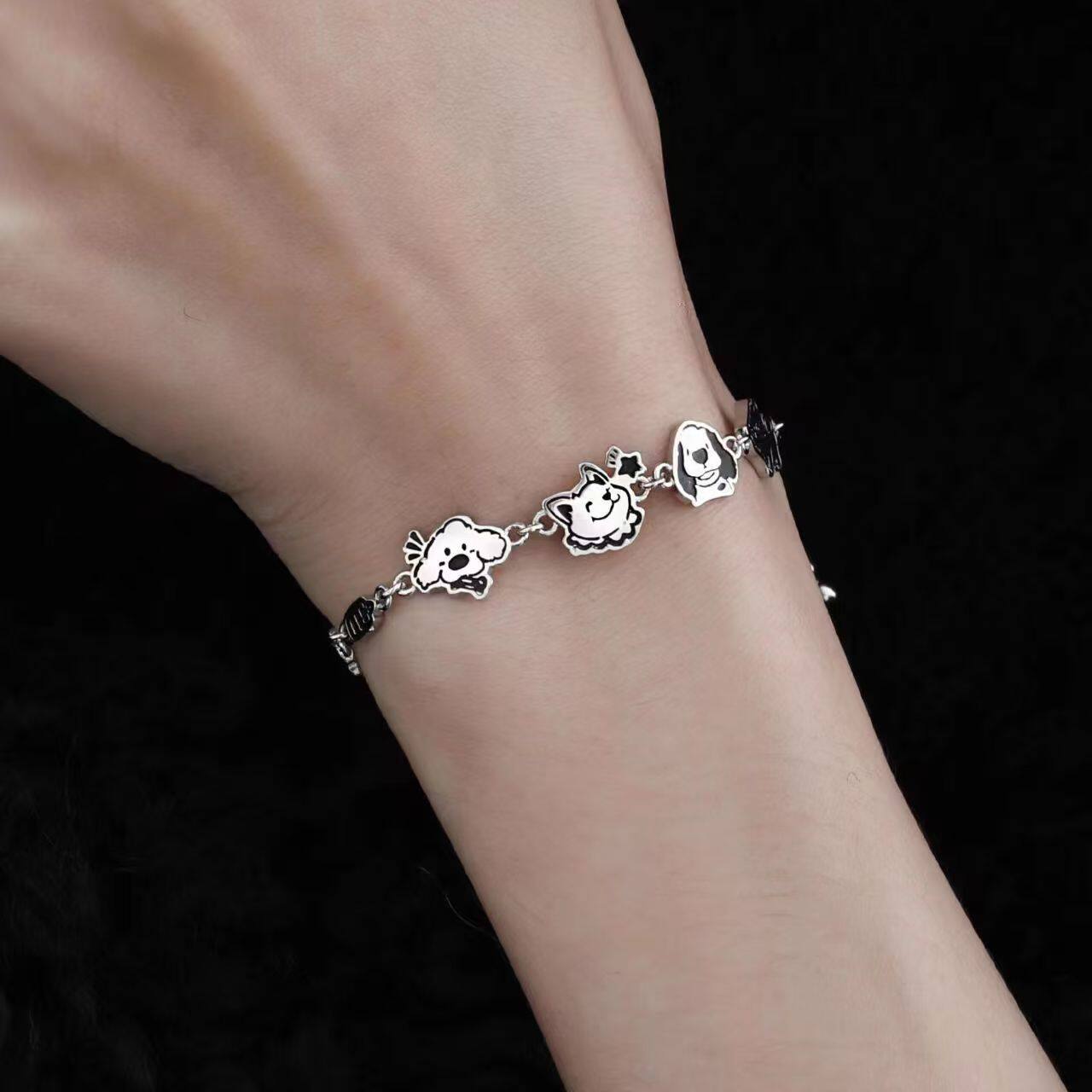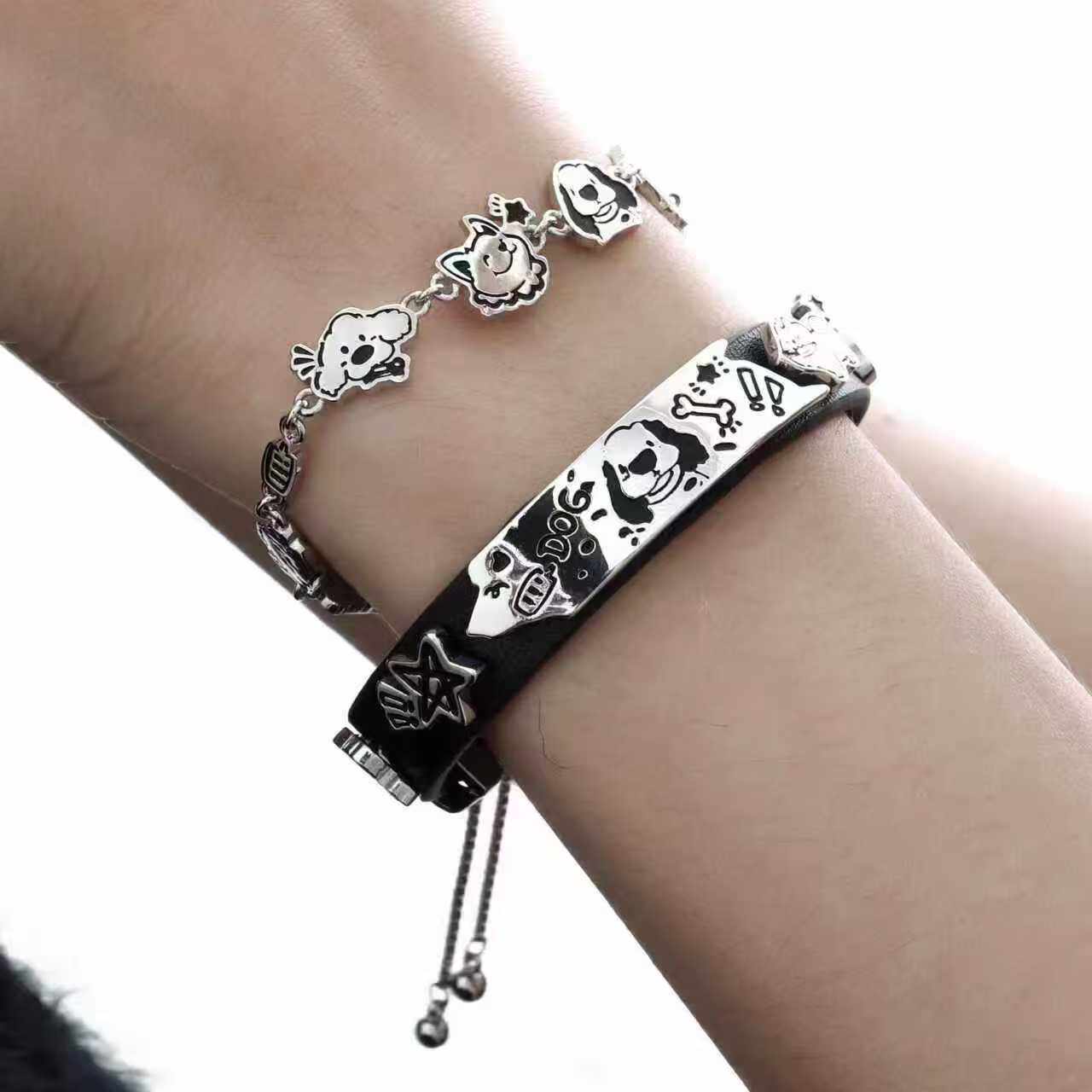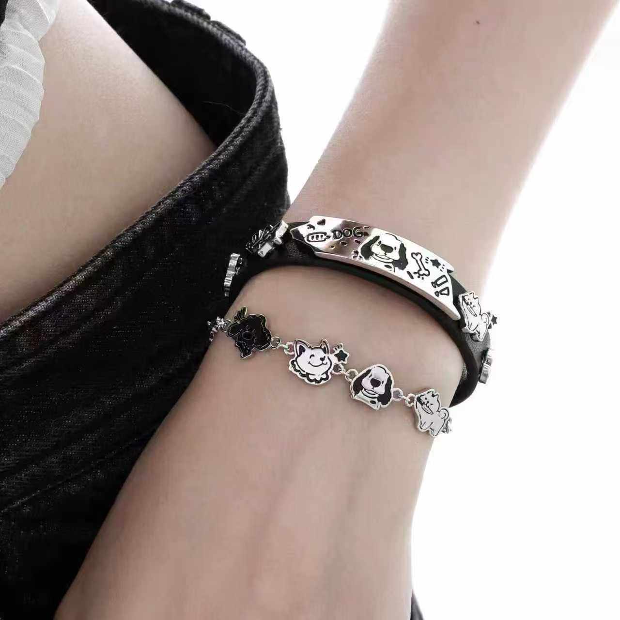 快乐小狗手链2025新款涂鸦设计高级甜酷抽拉链条手环冷淡风饰品