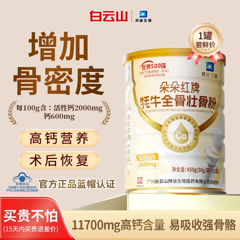 白云山壮骨粉骨折恢复营养品牦牛骨髓中老年人补钙片骨质疏松奶粉