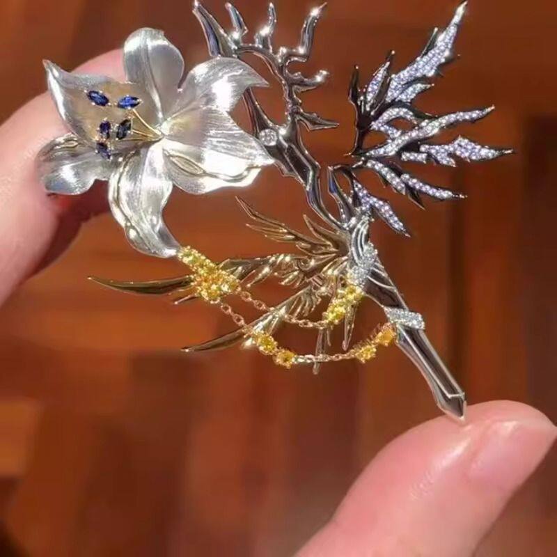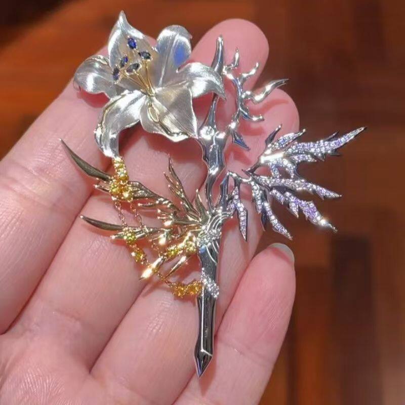 「百合花开」百合花胸针小众设计精致轻奢镶嵌点钻花卉别针胸花