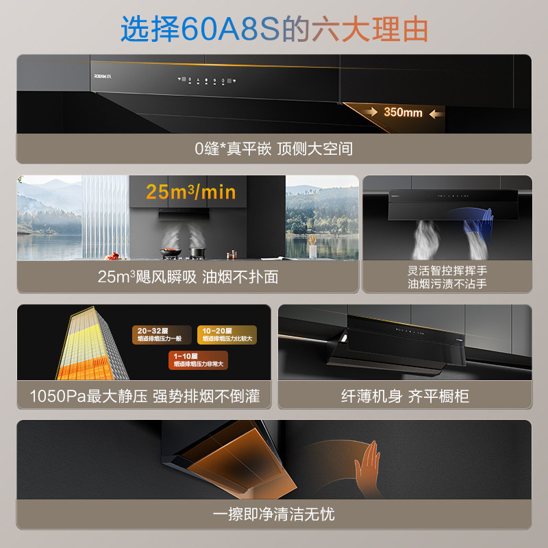 老板星辰系列60A8S抽油烟机家用超薄平嵌顶侧一体官方旗舰店