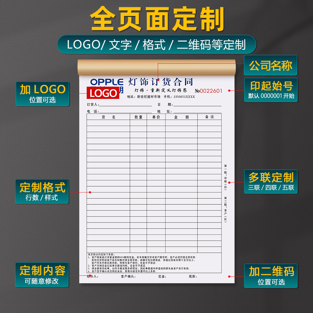 【灯饰照明专卖店专用】订单本二联定制五金批发销售送货清单工程灯具订购订货合同家居店家装安装报价结算单