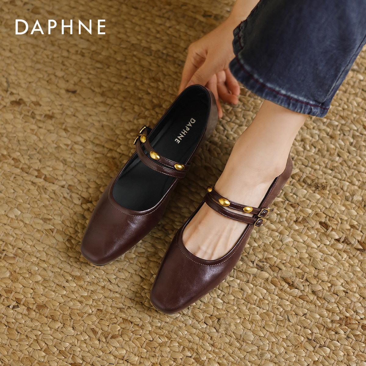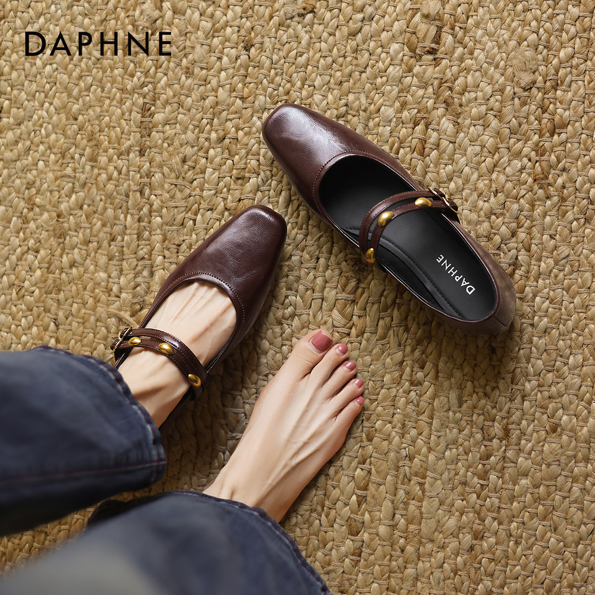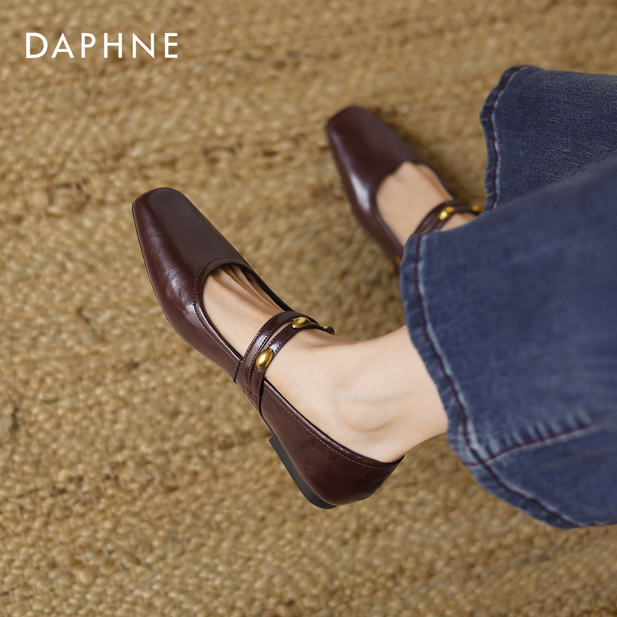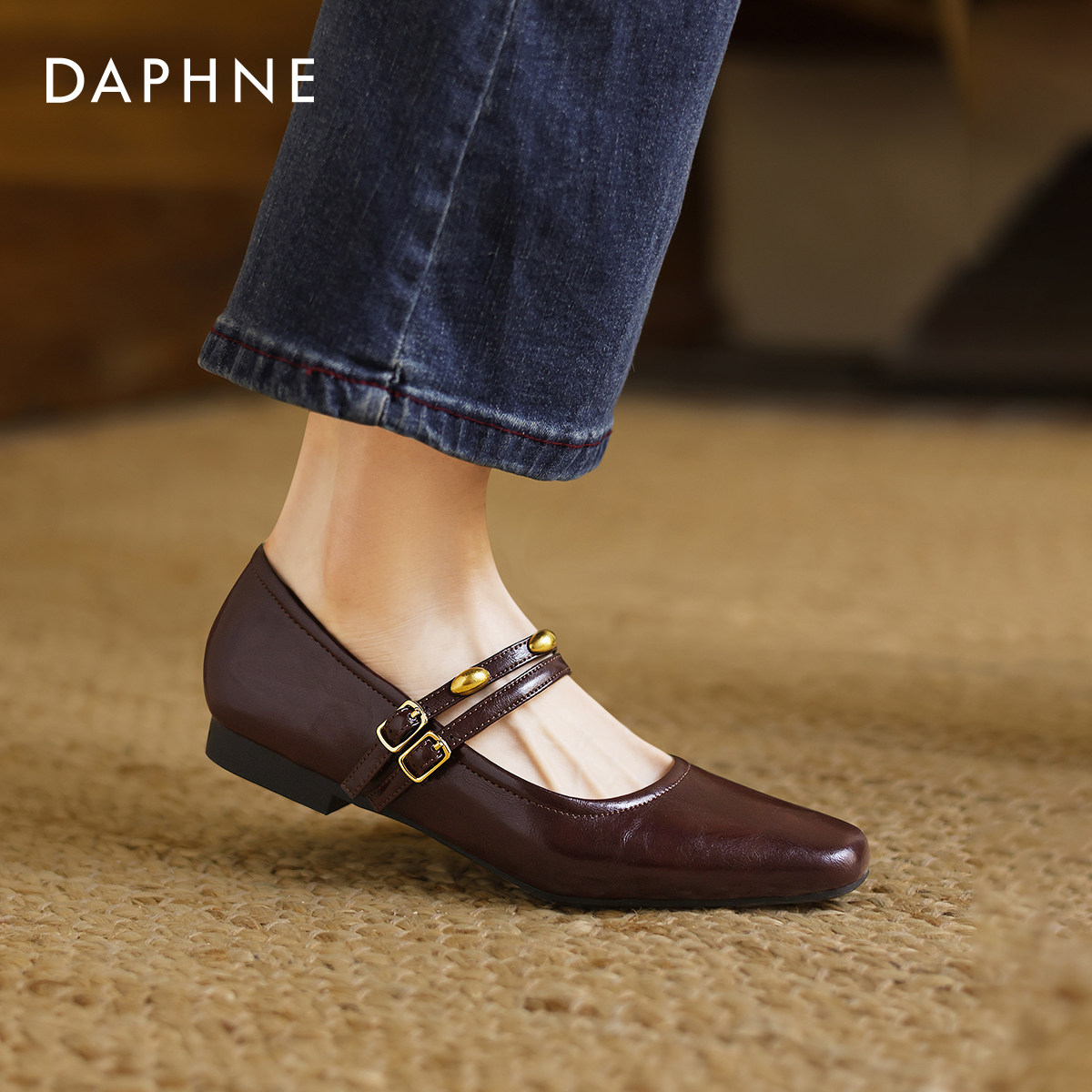 达芙妮浅口玛丽珍鞋女2026新款春季方头妈妈鞋法式复古小皮鞋女鞋