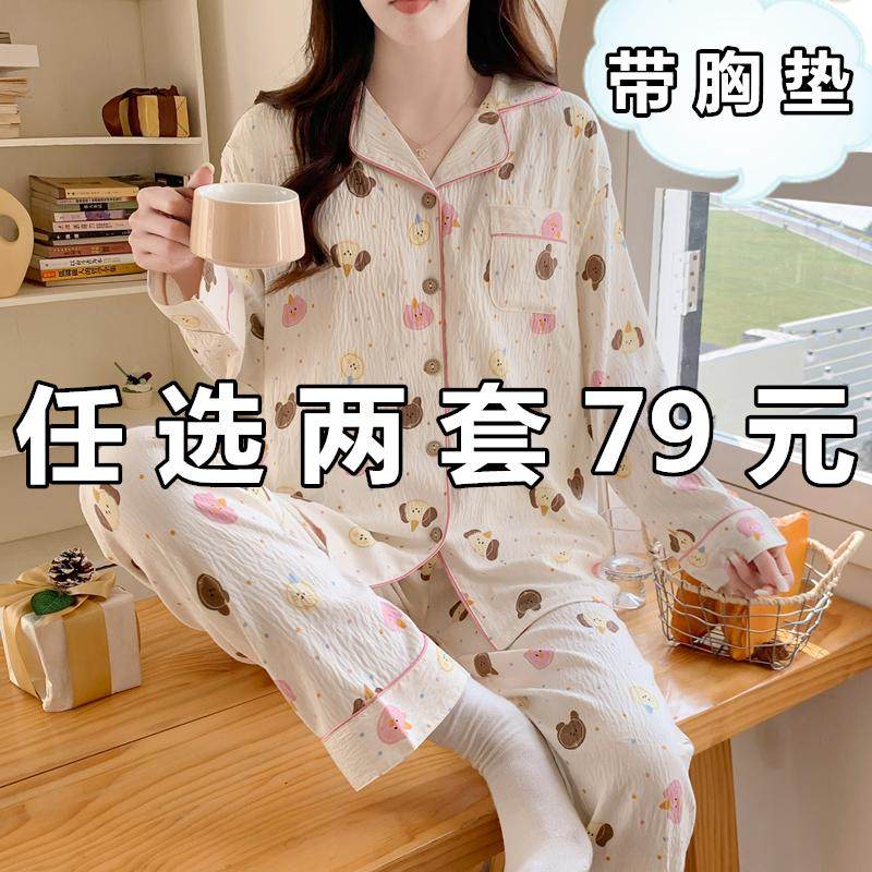 春秋季云感棉带胸垫月子服产后产妇秋冬12月份孕妇哺乳睡衣家居服