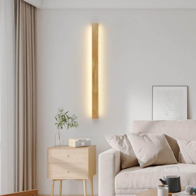 客厅电视背景墙一字氛围实木壁灯过道阳台卧室床头极简长条原木灯