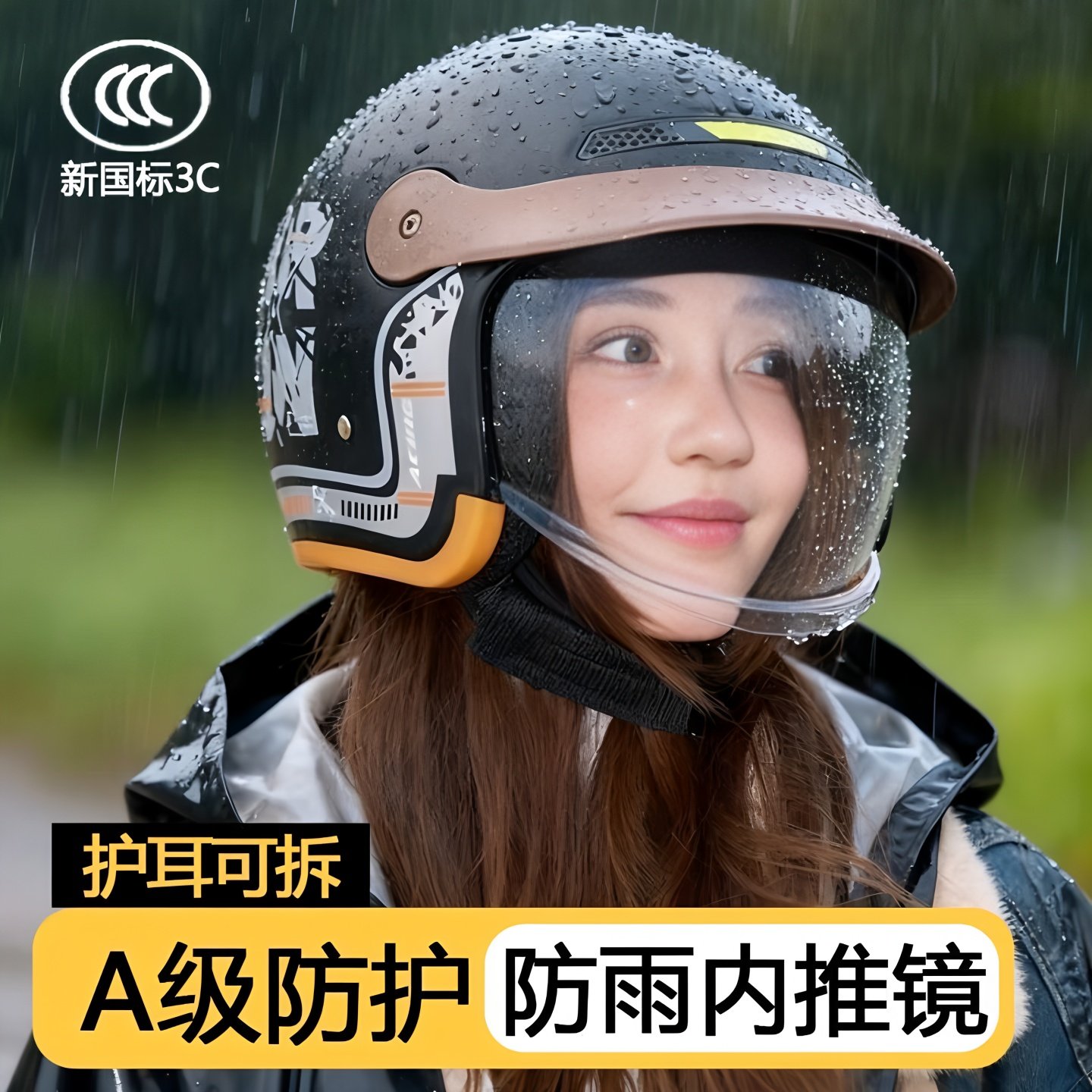 新国标3C认证电动摩托车头盔男女四季通用冬季电瓶儿新款童防晒帽