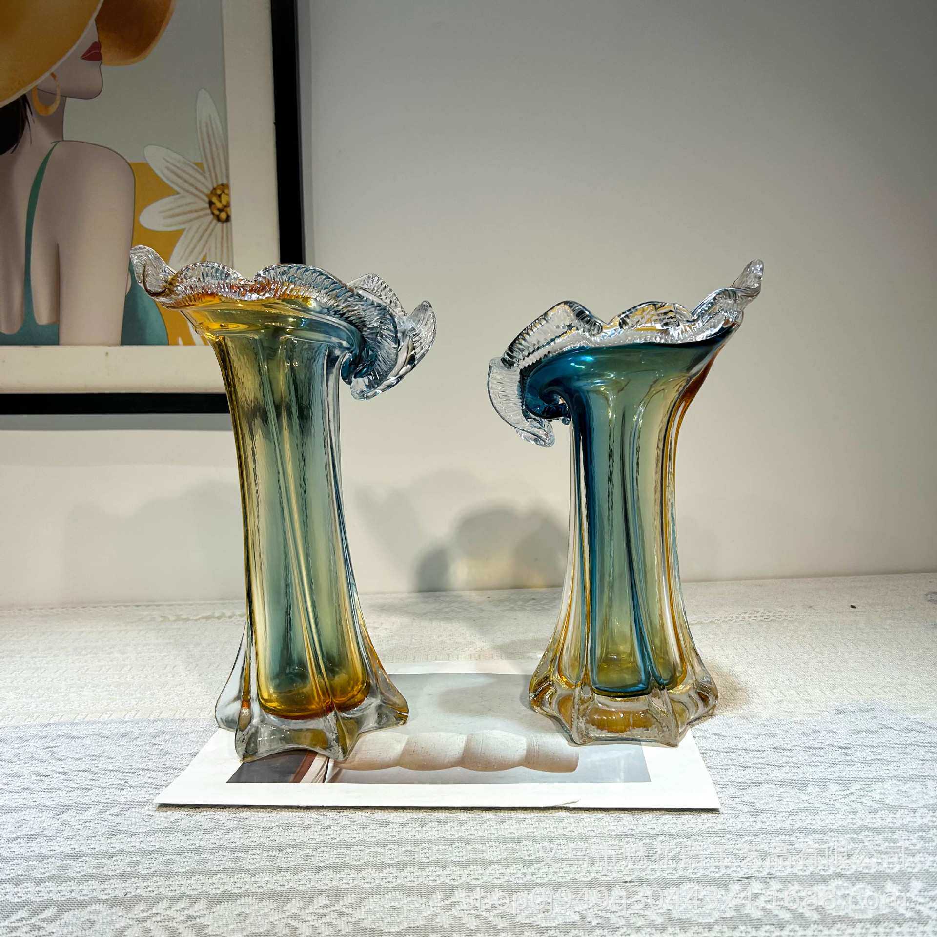 创意风手工花边渐变轻奢花瓶摆件高级样板房软装家居饰品客厅花器
