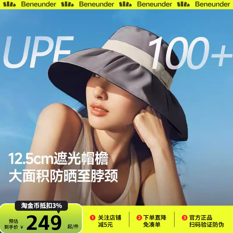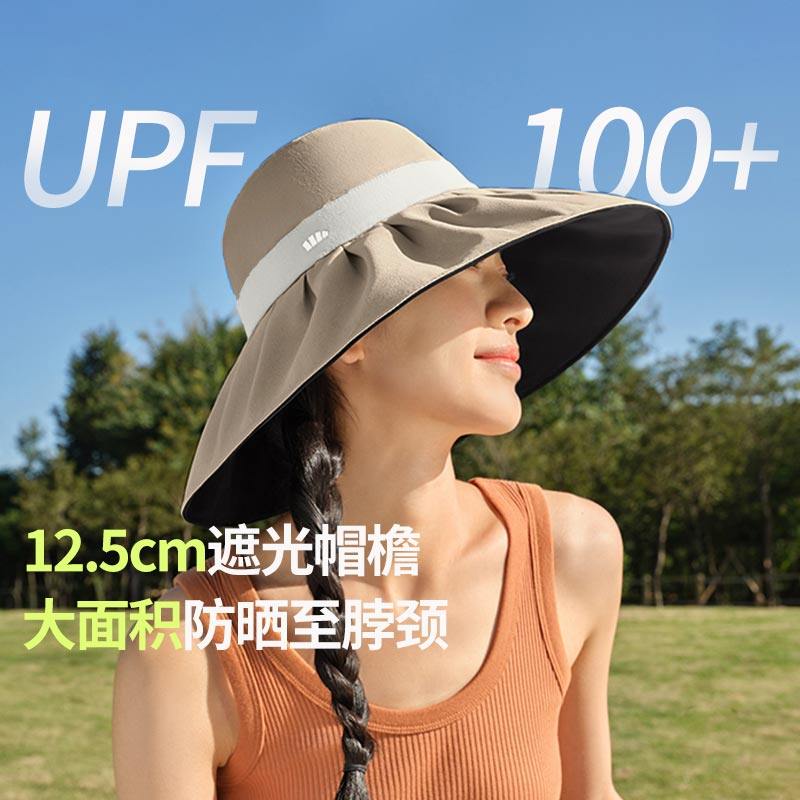 蕉下黑胶贝壳帽倍护空顶防晒全遮光显脸小女款大帽檐遮阳太阳帽子