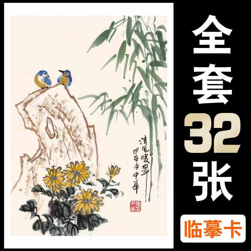 国画原创临摹卡传统国画花鸟蔬果绘画入门培训高清印刷32幅