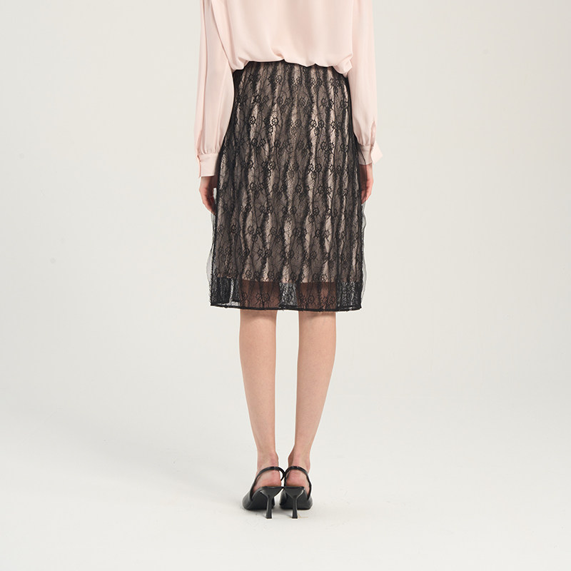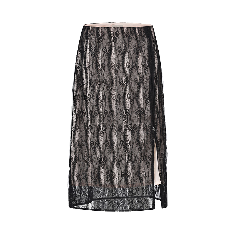 RARE威雅女裙 春夏新款半裙黑色镂空蕾丝交相叠印黑色包臀裙