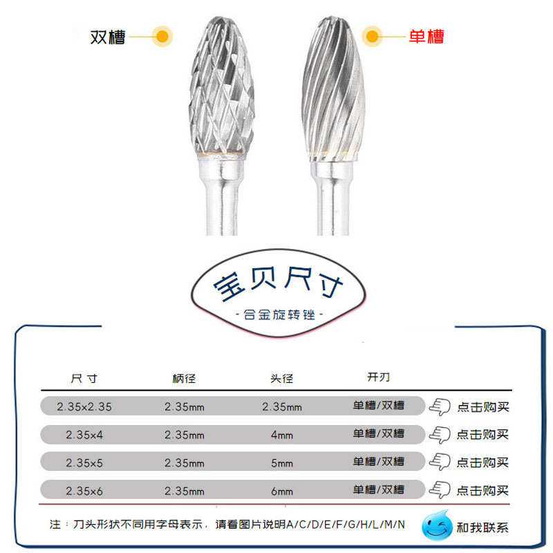 2.35x2.35/4/5/6mm硬质合金旋转锉木雕核雕扩孔铣刀金属电磨钻头