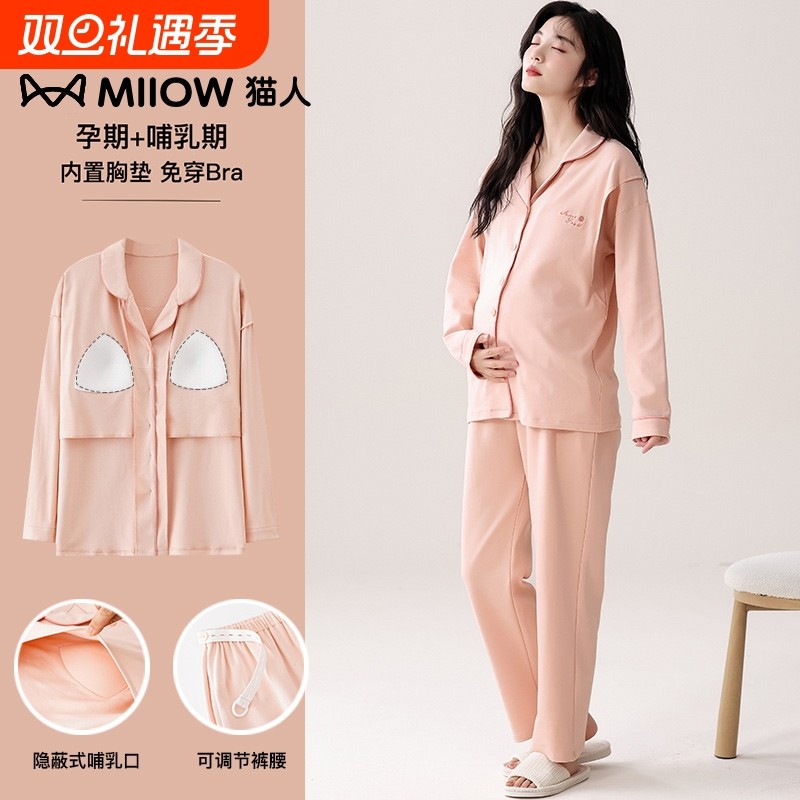 猫人孕妇睡衣春秋款产后怀孕期哺乳产妇纯棉大码月子服长袖家居服